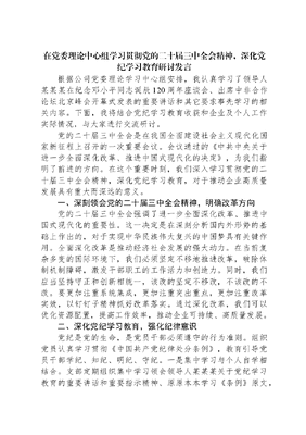 在党委理论中心组学习贯彻党的二十届三中全会精神,深化党纪学习教育研讨发言.docx