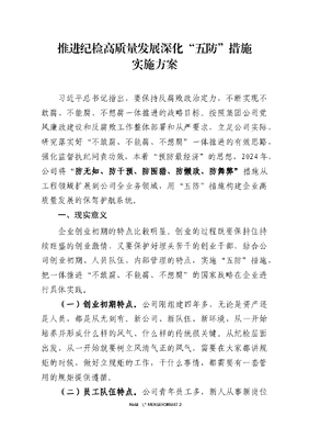 推进纪检高质量发展深化“五防”措施实施方案.docx