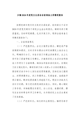 乡镇2024年度民主生活会会前准备工作情况报告.docx