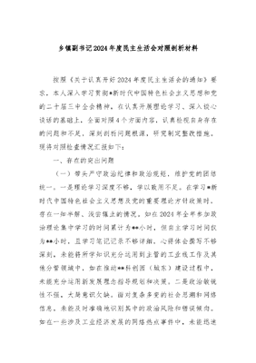 乡镇副书记2024年度民主生活会对照剖析材料.docx
