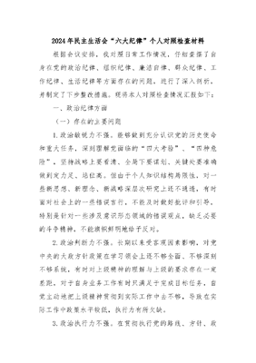 2024年民主生活会“六大纪律”个人对照检查材料.docx
