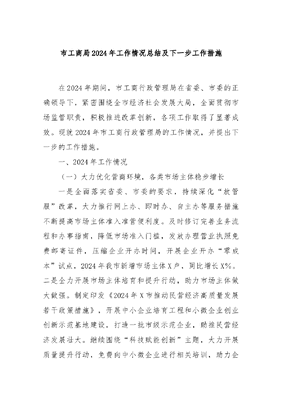 市工商局2024年工作情况总结及下一步工作措施.docx