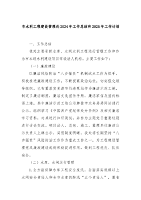 市水利工程建设管理处2024年工作总结和2025年工作计划.docx