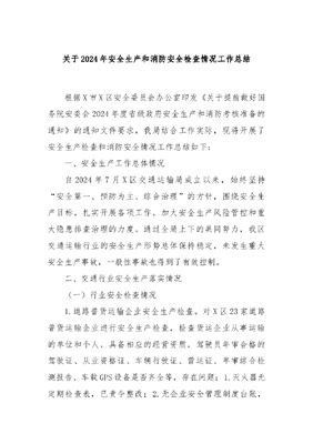关于2024年安全生产和消防安全检查情况工作总结.docx