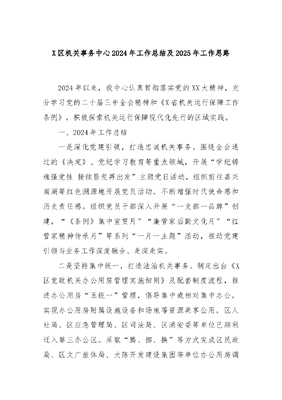 X区机关事务中心2024年工作总结及2025年工作思路.docx