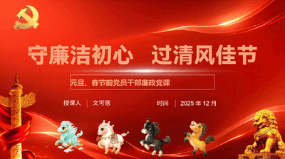 2026年元旦、春节前党员干部廉政党课PPT(附文稿):守廉洁初心过清风佳节.pptx