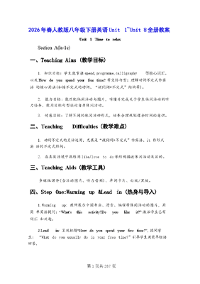 2026年教案合集2026年春人教版八年级下册英语Unit 1~Unit 8全册教案新版.docx