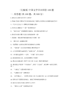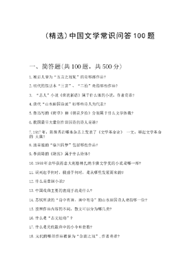 (精选)中国文学常识问答100题附完整答案【有一套】.docx