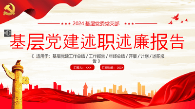 汇报人:XXX汇报时间:202X基党建述述廉告层职报《适用于:基层党建工作总结/工作报告/年终总结/开展/计划/述职报告 》2024基层党委党支部2023年以来,在上级部门的正确领导下,区X集团党委以XX为抓手,始终把主题教育作为看齐追随的强心针,不断锤炼集团全系统党性和事业心,集团党建工作取得了显著成效。按照会议要求,我就履行基层党建第一责任人职责和抓基层党建工作情况报告如下: 前言履职工作主要情况存在的主要问题及原因下一步工作思路和措施010203目录履工作主要情职况第01章节《适用于:基层党建工作总结/工作报告/年终总结/开展/计划/述职报告 》履职工作主要情况01支部简介职工总计128人党员总计75人入党积极分子6人本单位共有职工128人,其中党员75人,入党积极分子6人,预备党员3人,2023年新入党同志3人,党员占到职工总人数的73%,比去年同期增长26%。履职工作主要情况01党支部组织今年主要情况强化政治担当,不断夯实责任体系坚持思想上重视、精力上投入、工作上抓实,在认真履行管党治党主体责任上下功夫01强化政治引领,抓实主题教育工作把牵头组织开展不忘初心、牢记使命主题教育作为首要政治任务02强化问题导向,围绕短板精准施策把省委巡视反馈、述职评议点评具体问题整改03引化政治功能,服务全县中心大局坚持把政治功能体现到改革发展全过程,深度谋划基层党建与中心工作融合发展、同步提高的具体措施04履职工作主要情况01一是带头落实责任坚持思想上重视•召开X次常委会召开X次常委会、X次党建领导小组会议研究党建议题XX个,统筹谋划推动基层党建工作•坚持县委常委基层党建坚持县委常委基层党建六联制度,带头联系基层党组织X个,蹲点调研X次,解决突出问题XX个•牵头开展的农牧村党建牵头开展的农牧村党建阵地改造提升和智慧X信息化建设等X个基层党建改革创新项目得到有效推进履职工作主要情况01•将基层党建重点任务细化为X类X项,建立重点工作任务提醒通报制度和书记抓党建责任清单制度•将党(工)委书记抓党建纳入干部责任、成绩、问题三张清单管理,一季一督查、半年一通报,形成层层抓问题、行行求突破、全域抓党建的责任链条,今年约谈党(工)委主要负责人XX人(次)二是层层压实任务履职工作主要情况01在认真履行管党治党主体责任上下功夫•县级财政落实基层党建工作经费XXX万元,比上年增长XX%,所有村社办公经费均达到省市标准,全县村主职干部年平均工资报酬达到X万元•县乡两级投入X多万元,改造提升X个村级阵地•加大关心关爱力度,从县管党费中列支XX万元,帮扶慰问老党员、困难党员XXX多人次。三是着力抓实保障履职工作主要情况01把牵头组织开展不忘初心、牢记使命主题教育作为首要政治任务,立足实际提前谋划推动,强化领导干部示范带动,健全机制加强分类指导,突出问题导向狠抓任务落实,全县主题教育达到预期目的、取得明显成效紧扣五大目标、对焦四项措施、突出四个到位引领X名县级干部率先垂范作出表率,X名科级干部担当尽责带头落实,X个党组织和X名党员全程参与,做到了主题教育无盲区全覆盖解决群众急难愁盼问题X个,让基层群众及时看到了主题教育带来的新变化新气象高起点谋划布局高站位把准方向高标准推动落实履职工作主要情况01一是高起点谋划布局充分借鉴第一批主题教育实践经验,紧扣五大目标、对焦四项措施、突出四个到位,立足X实际研究制定实施方案在学习在学习教育上突出引领性在检视在检视问题上突出靶向性在调查在调查研究上突出针对性在整改在整改落实上突出实效性力促各级党组织把学习教育放在首位、调查研究同步进行、检视问题贯穿全程、整改落实一刻不等履职工作主要情况01带头读原著带头读原著、学原文、悟原理带头在读书带头在读书班开展研讨交流,带头下基层搞宣讲、上党课带头认领调研课题带头认领调研课题到基层一线蹲点解剖麻雀;带头剖析检视带头剖析检视自身问题抓好整改落实始终坚持高标准严要求,带头读原著、学原文、悟原理,带头在读书班开展研讨交流,带头下基层搞宣讲、上党课,带头认领调研课题到基层一线蹲点解剖麻雀,带头剖析检视自身问题抓好整改落实,引领X名县级干部率先垂范作出表率,X名科级干部担当尽责带头落实,X个党组织和X名党员全程参与,做到了主题教育无盲区全覆盖二是高站位把准方向履职工作主要情况01精准把握时间节点,制定推进计划表,列出指导清单,及时下发工作提醒,指导各级党组织把规定动作做到位、把自选动作做出彩,保证主题教育不变形、不走样、见实效主题教育期间,全县各级党组织征求意见建议X条,检视梳理问题X条,即知即改X条,形成调研成果X篇,解决群众急难愁盼问题X个,让基层群众及时看到了主题教育带来的新变化新气象三是高标准推动落实精准把握时