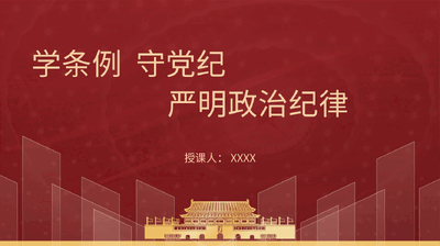 学条例守党纪 严明政治纪律授课人:XXXX云选科技版权所有红船网版权所有前言PREFACE我们党是靠革命理想和铁的纪律组织起来的马克思主义政党,在党的各项纪律中,政治纪律是最重要、最根本、最关键的纪律,是管方向、管立场、管根本的总要求。2023年12月,党中央印发了修订后的《中国共产党纪律处分条例》,把坚决维护以重要领导为核心的党中央权威和集中统一领导作为出发点和落脚点,进一步严明党的政治纪律和政治规矩。云选科技版权所有红船网版权所有前言PREFACE重要领导在二十届中央纪委三次全会上要求,以学习贯彻新修订的纪律处分条例为契机,在全党开展一次集中性纪律教育。广大党员干部要深入学习贯彻重要领导的重要讲话和重要指示精神,把学习贯彻《条例》作为重要政治任务,深刻认识政治纪律和政治规矩的重要性,切实把对两个确立决定性意义的深刻领悟转化为两个维护的自觉行动,始终在政治立场、政治方向、政治原则、政治道路上同党中央保持高度一致。目录CONTENT01我们党历来高度重视政治纪律,严明纪律首要的就是严明政治纪律02《条例》把坚决维护以重要领导为核心的党中央权威和集中统一领导作为出发点和落脚点,进一步充实完善纪律规矩要求03严格贯彻执行党的政治纪律和政治规矩,带动各项纪律全面从严、一严到底我们党历来高度重视政治纪律,严明纪律首要的就是严明政治纪律PARTONE我们党历来高度重视政治纪律,严明纪律首要的就是严明政治纪律纪律严明是党的光荣传统和独特优势,我们党正是在不断加强纪律建设中纯洁组织、发展壮大的,严明的纪律特别是政治纪律为我们党在不同历史时期、完成不同历史使命提供了坚强有力的保障。我们党历来高度重视政治纪律,严明纪律首要的就是严明政治纪律党成立初期,就树立了明确的纪律立党理念,尤为重视纪律建设特别是政治纪律建设1922年党的二大诞生的第一部党章专门用9个条文规定党纪,其中要求区或地方执行委员会及各组均须执行及宣传中央执行委员会所定政策,不得自定政策;1927年党的五大通过《对于组织问题决议案》明确提出政治纪律概念,指出党内纪律非常重要,宜重视政治纪律;1927年10月制定人民军队基本纪律——三大纪律、六项注意,第一条就明确行动听指挥……我们党历来高度重视政治纪律,严明纪律首要的就是严明政治纪律维护党的团结和统一、对党忠诚老实、严格请示报告制度等写入《中国共产党章程》《关于党内政治生活的若干准则》《中国共产党纪律处分条例》等党内法规随着认识和实践的深化,我们党对严明纪律的规律性认识也在不断深化,对政治纪律的要求更加全面严格我们党历来高度重视政治纪律,严明纪律首要的就是严明政治纪律进入新时代,面对新形势新任务新要求,以重要领导为核心的党中央坚持问题导向,把严明政治纪律和政治规矩摆在更加突出位置,营造旗帜鲜明讲政治、从严从紧抓纪律的氛围,对顶风违反政治纪律和政治规矩的问题严查严处。我们党历来高度重视政治纪律,严明纪律首要的就是严明政治纪律党的十八大以来,在全面从严治党实践中,我们深刻认识到,党内存在的很多问题都同政治问题相关联,都是因为党的政治建设没有抓紧、没有抓实。政治问题,任何时候都是根本性的大问题。全面从严治党,必须注重政治上的要求,必须严明政治纪律。我们党历来高度重视政治纪律,严明纪律首要的就是严明政治纪律在党的十八大后第一次出席中央纪委全会时,重要领导就突出强调政治纪律,指出严明党的纪律,首要的就是严明政治纪律;十九届中央纪委三次全会上,重要领导要求,要严守政治纪律,在重大原则问题和大是大非面前,必须立场坚定、旗帜鲜明;党的二十大上,重要领导明确提出落实新时代党的建设总要求,加强党的政治建设,严明政治纪律和政治规矩;二十届中央纪委三次全会上,重要领导再次强调,坚持激浊和扬清并举,严明政治纪律和政治规矩……我们党历来高度重视政治纪律,严明纪律首要的就是严明政治纪律重要领导不仅强调政治纪律和政治规矩的重要性,还结合实践点问题、指路径、教方法在党的十八届四中全会上,列举了违反政治纪律的七个有之问题;在十八届中央纪委五次全会上,首次明确提出遵守政治规矩的要求;在党的十九大上,把严明政治纪律和政治规矩作为党的政治建设的重要内容,要求全党切实遵守;在党的二十届一中全会上,明确提出把维护党中央权威和集中统一领导作为最根本的政治纪律和政治规矩……我们党历来高度重视政治纪律,严明纪律首要的就是严明政治纪律制定《关于新形势下党内政治生活的若干准则》,把严明政治纪律作为新形势下加强和规范党内政治生活的重要内容;修订《中国共产党党内监督条例》,将落实全面从严治党责任,严明党的纪律特别是政治纪律和政治规矩,推进党风廉政建设和反腐败工作情况明确为党内监