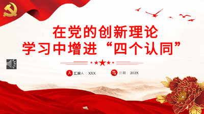 人:汇报XXX日期:202X在党的创新理论学习中增进四个认同注重思想建党、理强党,是我党的明特色和光。近平指出,思想,就是论们鲜荣传统习总书记学要全面新代中特色社主思想,全面系掌握一思想的基本点、科体系,把握好学习领会时国会义统这观学一思想的世界、方法,持好、用好穿其中的立点方法,不增党的新理的政这观论坚运贯场观断进对创论治同、思想同、理同、情感同。我要把思想穿主育全程,持思悟、认认论认认们学贯题教过坚学践知行合一,推党的新理落地生根、花果、收其效。动创论开结尽前 言第一在提高政治站位、强化党忠中增政治同对诚进认目录/CONTENTE第一在凝心魂、深照中增思想同铸学细进认第一在思悟、知行合一中增理同学践进论认第一在民、行宗旨中增情感同为务实践进认在提高政治站位、强化对党忠诚中增进政治认同01第一部分 PARTONE在提高政治站位、强化对党忠诚中增进政治认同深刻悟确立的定性意,做到,领两个决义坚决两个维护不提高政治判力、政治悟力、政治行力。断断领执定政治信仰。坚01站政治立。稳场02强化政治担。当03政治同乎方向和道路,认关具有根本性、全局性意。义增政治同,就是要进认从党和家、民族和人民利国益的高度,近平新对习时代中特色社主思想国会义自心地同,发内认定政治信仰。坚心中有信仰,脚下有力量。无去、在是,克论过现还将来对马思主的信仰,社主和共主的信念,始是共党义对会义产义终产人的政治魂,是共党人受住任何考的精神支柱。灵产经验奋进新征程,更加需要我筑牢信仰之基、足精神之、把思们补钙稳想之舵,始保持共主大理想和中特色社主共终对产义远国会义同理想的醒知和着追求,自做近平新代中特色清认执觉习时国社主思想的定信仰者、忠者。会义坚实实践在提高政治站位、强化对党忠诚中增进政治认同站政治立。稳场•定政治立、始党忠是党干部的必品,也是坚场终对诚员备质政治修的底要求。为线•持一切工作都首先政治上考量把握,一切部署都首先考坚从政治影和政治效果。虑响•持党管宣、党管意形、党管媒体原,把政治家坚传识态则办、刊、台、新站要求落到工作的全程和各报办办办闻网实过方面,使宣思想始成党放心、人民信的传战线终为让让赖坚强堡。垒在提高政治站位、强化对党忠诚中增进政治认同近平强:任何候任何情下,党的干部在政治上都要站得、靠得住,党习总书记调时况领导稳对忠老、党中央同心同德,听党指、党。诚实与挥为尽责党是党干部基本的任,更是根本的政治担为尽职员责义务。始把深入近平新代中特色社主当终学习贯彻习时国会义思想作首要政治任,着力在育、究、宣为务学习教研阐释普及、推落等方面下功夫,健全用党的新理武传动实创论装全党、育人民、指的工作体系,切把理力教导实践实真量化全面建社主代化家的强大力。转为设会义现国动强化政治担。当在提高政治站位、强化对党忠诚中增进政治认同在凝心铸魂、深学细照中增进思想认同02第二部分 PARTTWO持克思主指地位。坚马义导在凝心铸魂、深学细照中增进思想认同思想同乎正确的形成,是人行的先。增思想同,认关认识们动导进认就是要思想上近平新代中特色社主思想的科从认识对习时国会义学性、体系性自心地同,更好地一思想、一意志、一行发内认统统统。动克思主是我立党立、党的根本指思想,是社主意形的旗和马义们国兴兴国导会义识态帜魂。持克思主指地位,就是要一步弄通做近平新代中特色社灵坚马义导进学懂实习时国主思想,自地用以新代文化建,不固全党全各族人民斗的会义觉统领时设断巩国团结奋共同思想基。科用一思想之矢去射本地本部改革展之的,化思想础学运这区门发优方法,解思想困惑,在把握律、提升能力中更富造性地展工作。决规创开在凝心铸魂、深学细照中增进思想认同●大代需要新理指引,大事需要主流伟时创论伟业鼓。舆论劲●持守正新,突出高精尖,把握度效,坚创时统筹上下、宣外宣、媒体和新媒体,深入网网内传统展主宣、形宣、政策宣、成就宣、开题传势传传传典型宣,正能量更强、主旋律更高。传让劲昂固大主流思想。巩壮舆论持做好强信心宣引,续传导把展机遇、展略、发发战发展前景深、透、新、讲讲讲活,改善社心理期、讲为会预提振展信心、推高量发动质展鼓加油,以强大的主发劲流思想凝聚人心、引舆论领社。会党员干部最重要的政治品格是对党忠诚就是力量,斗未。全面建社主代化家,是团结奋开创来设会义现国一大而巨的事,前途光明,任重道,需要充分万项伟艰业远发挥亿人民的造力。在强建、民族的新征程上,我必创伟国设复兴们须坚持不懈用近平新代中特色社主思想凝心魂,持用社习时国会义铸坚主核心价滋人民群心田,加强民族步和牢中会义值观润众团结进铸民族共同体意宣育,把人民群最广泛地在党的周,华识传教众团结围把方方面面的智慧和力量凝聚起,朝着宏目一心向前。来伟标团结进聚斗精神力量。汇团结奋在学思践悟、知行合一中增进理论认同