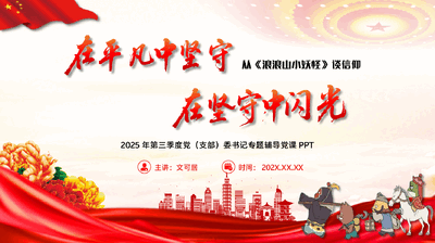 主讲:文可居时间:202X.XX.XX从《浪浪山小妖怪》谈信仰2025年第三季度党(支部)委书记专题辅导党课PPT前言今天,我想和大家分享一部近期引发广泛讨论的国产动画电影——《浪浪山小妖怪》。这部作品没有炫目的特效,没有明星配音,主角甚至连名字都没有,只是一只生活在深山老林、身份卑微、法力平平的小妖怪。它不是天庭的神仙,也不是取经队伍中的天选之子,只是万千生灵中最普通的一员。然而,正是这样一个无名之辈,却做出了令人动容的选择——他鼓起勇气,穿上破旧的袈裟,模仿唐僧的模样,带着一群同样无名的小妖,踏上了取经之路。这一幕,看似荒诞,却深深触动了我。它让我们思考一个严肃而深刻的问题:在平凡的岗位上,在无人知晓的角落里,我们是否还能保持内心的光亮?我们是否还相信自己所做之事的意义?我们心中,是否还燃烧着那团不灭的信仰之火?信仰,始于微光:平凡中的不凡选择01历史的回响:星星之火,可以燎原02信仰的试金石:绝境中的坚守03鲁迅的脊梁论:民族的希望在于不肯坐以待毙的人04现实的拷问:我们是否在等待孙悟空?05信仰的落脚点:在岗位上发光,在行动中践行06目录CONTENTS信仰,始于微光平凡中的不凡选择壹一、信仰,始于微光:平凡中的不凡选择电影中的小妖怪,没有名字,没有背景,没有资源,甚至连一件像样的法器都没有但他有一个最珍贵的东西——向往光明的心他知道真正的取经人是谁