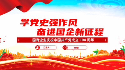 国有企业庆祝中国共产党成立104周年汇报人:时间:学党史强作风学党史强作风奋进国企新征程奋进国企新征程前言今年是中国共产党成立104周年。在这具有特殊意义的时刻,我们齐聚一堂,共同回顾党的光辉历程,汲取奋进力量。百年党史,是一部践行党的初心使命的历史,是一部党与人民心连心、同呼吸、共命运的历史,更是一部不断加强作风建设,以优良作风赢得人民信任、汇聚磅礴力量的历史。对我们市属国有企业而言,深入学习党史中的作风建设经验,对于加强党的建设、推动企业高质量发展具有极为重要的现实意义。目录1党史镜鉴:作风建设的宝贵经验2对标检视:作风建设的现实审视3行动指南:作风建设的实践路径第一部分党史镜鉴作风建设的宝贵经验(一)注重思想引领,筑牢作风根基庆祝中国共产党成立104周年习近平总书记强调,作风建设要返璞归真、固本培元,重点突出坚定理想信念、践行根本宗旨、加强道德修养。从建党初期先进分子通过创办刊物、开办夜校宣传革命思想,到土地革命时期古田会议强调用无产阶级思想进行军队和党的建设,再到延安整风运动通过加强马克思主义理论学习教育,实现学风、党风、文风的好转,都充分体现了思想引领在作风建设中的关键作用。从建党初期,到土地革命,再到延安整风运动庆祝中国共产党成立104周年通过开展整风运动、三反斗争以及一系列集中性教育活动,不断引导党员、干部坚定理想信念,加强党性修养。新中国成立后党内持续开展的集中
