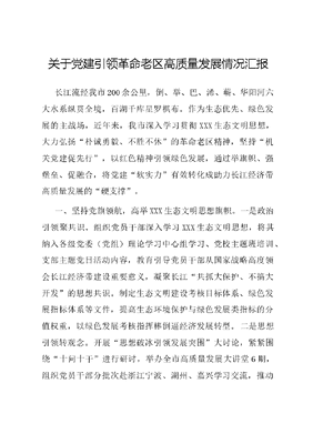 关于党建引领革命老区高质量发展情况汇报长江流经我市200余公里,倒、举、巴、浠、蕲、华阳河六大水系纵贯全境,百湖千库星罗棋布。作为生态优先、绿色发展的主战场,近年来,我市深入学习贯彻XXX生态文明思想,大力弘扬朴诚勇毅、不胜不休的革命老区精神,坚持机关党建促先行,以红色精神引领绿色发展,通过举旗帜、强堡垒、促融合,将党建软实力有效转化成助力长江经济带高质量发展的硬支撑。一、坚持党旗领航,高举XXX生态文明思想旗帜。一是政治引领聚共识。组织党员干部深入学习XXX生态文明思想,将其纳入各级党委(党组)理论学习中心组学习、党校主题班培训、支部主题党日活动内容,教育引导党员干部从国家战略高度领会长江经济带建设重要意义,凝聚长江共抓大保护、不搞大开发的思想共识。制定生态文明建设考核目标体系、绿色发展指标体系等文件,提高生态环境保护与绿色发展类指标的分值权重,以绿色发展考核指挥棒倒逼经济发展转型。二是思想引领转观念。开展思想破冰引领发展突围大讨论,紧紧围绕十问十干进行研讨,举办全市高质量发展大讲堂6期,组织党员干部分批次赴浙江宁波、湖州、嘉兴学习交流,推动党员解放思想、更新观念、提升能力。三是作风引领守底线。举办以红色精神筑清廉之魂研学活动,组织党员集中观看《长江经济带生态环境警示片》,教育引导党员守住纪律底线。扎实推进清廉机关建设,深入开展清廉岗位、清廉科室、清廉窗口、清廉项目、清廉工地创建活动,持续纠治形式主义、官僚主义,提升机关作风建设效能。二、坚持组织赋能,筑牢长江流域综合治理的战斗堡垒。一是把战斗堡垒建在发展一线。健全党建领着项目跑、要素跟着项目走的组织体系,坚持组织设置与项目建设同步,遇到急难险重任务,同步设立党的组织机构,加强对重难点工作的领导。以强县工程和乡村振兴为主攻方向,建立农村党组织、包联机关事业单位党组织、项目企业党组织三方联动红色联盟,推动项目、基地、产业链党组织全覆盖,打造了英山四季花海片区、罗田燕儿谷片区、浠水县绿杨乡茶叶链等共同缔造示范点。紧紧围绕市委重点工作,成立9个党建协作区,以党建协作区为单位实施党员领办攻坚行动,推动41项一件事一次办改革项目落地,方便市场主体和群众办事。充分运用好长江黄金水道优势,以共建武鄂黄黄国际综合交通枢纽和一体化发展为契机,成立交通领域重大项目建设功能党支部,有效推动燕矶长江大桥、唐家渡港区综合码头建设。二是把战斗堡垒建在执法一线。在生态环境执法一线设立党支部、党员突击队、党员先锋队、党员责任区等,推动党员在执法第一线建功。以党旗红引领生态绿助力都市圈一体发展为主题,推进武汉都市圈发展生态环境共保联治,与黄石市、安庆市、九江市等城市生态环境部门,在武穴联合开展共护长江水,赣鄂皖碧水行动和武汉都市圈长江流域综合整治。去年以来,共出动执法船只1900余艘次,严肃查处非法采砂、非法捕捞案等违法犯罪31起、刑事立案16起,推动长江生态持续好转。三是把战斗堡垒建在志愿服务一线。建立长江大保护常态宣传机制,组建宣讲队深入社区、农村、学校、企业开展长江执法、环境保护等宣讲活动200余场次。组建长江大保护党员先锋服务队,推动各县(市、区)成立生态环境志愿先锋队,联合开展植绿、清河、净滩、禁捕等活动200余次,1000名党员带头开展清河志愿服务活动,带动周边群众共同开展长江大保护。三、坚持发展为民,增强人民群众绿色发展获得感。一是着力打造让人民群众放心的水环境。以流域综合治理统筹发展和安全,系统制定城市发展战略,编制国土空间规划、流域综合治理和统筹发展规划。出台饮用水水源地保护、白莲河库区水环境保护、畜禽养殖污染防治、武山湖太白湖龙感湖水资源环境保护条例等地方性法规,保护人民群众饮水安全。成立遗爱湖水环境综合治理工程等功能党支部,将水利、城管、住建、生态派出的党员纳入支部管理,有效助推清淤工程进度、水生态净化。二是着力打造让人民群众宜居的人居环境。深入推进美好环境与幸福生活共同缔造,优化机关企事业单位包联社区、党员干部常态化下沉社区工作机制,通过配套资金、以奖代补等方式,以群众容易参与、乐于参与的实事小事为切入点,引导群众参与家门口的民生工程,发动群众自筹资金开展房屋、院落绿化美化,最大限度实现自己的事自己办花小钱办实事。截至目前,各社区包联单位已为群众办理实事597件,有效解决了部分社区(小区)脏、乱、差、违等突出问题。三是着力打造让人民群众满意的营商环境。常态化开展人人都是营商环境献策讨论,引导党员进一步解放思想、更新观念。扎实开展千人进千企行动,广泛开展党员代办、帮办服务,对满足条件可享受工业高质量发展、稳增长促发展奖励政策的企业开展一站式服务,帮助市场主体解决难题571个。持续开展技改赋能、制