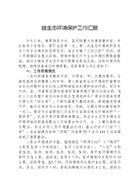 镇生态环境保护工作汇报今年以来,镇聚焦党中央、国务院重大决策部署和省、市区有关工作要求,紧盯全区第一次、第二次生态坏境保护委员会工作会议确定的目标任务,结合全镇三抓三促行动,深入开展辖区各重点区域、领域和重点环节生态环境问题排查整治,推动全镇各类生态环境问题整治起底见效,消除环境风险隐患,持续改善生态环境质量,现将具体工作汇报如下:一、工作开展情况一是问题排查及整改方面。对照省、市、区整改要求,全面起底涉及我镇第二轮中央、第二轮省级生态环境保护督察信访交办问题和近年以来上级明察暗访反馈和信访问题,对历年中央、省、市督察反馈的翟湾村生猪养殖户粪污污染问题、X村二三社养殖户粪污污染问题及X河道砂石厂涉污问题每季度开展1次回头看,不断巩固提升整改成效,杜绝整改标准不严、敷衍反弹应付过关的情况。同时,对照反馈问题坚持举一反三,督促行业监管部门及各村全面落实生态环境保护一岗双责,扎实开展污染源排查整治。先后6次召开全镇生态环境领域问题排查整治工作部署会和大气、水、土壤污染防治专题会,结合农村人居环境整治行动,重点对农户门前三堆、农业面源污染和四烧污染等52个点位164个污染源完成了清理整治。二是水环境保护方面。围绕辖区两河六沟(两河分别是X河(市级河流)、X河(区级河流);六沟分别是X沟、X沟、X沟、X沟、X沟、X沟。其中X河镇域内长度约为X公里,流经X、X等5个村;X河镇域内长度约为15公里,流经等X、X5个村;闫沟镇域内长度约6公里,流经闫沟、范庄、颉河3个村;普陀沟镇域内长度约3公里,流经白杨林村;刘家山沟镇域内长度约2公里,流经白杨林村;丁家沟镇域内长度约4公里,流经X、X2个村;X沟镇域内长度约4公里,流经X、X2个村;火龙沟镇域内长度约6公里,流经X、X等3个村。)深入推进河湖四乱清理整治,完成X河、X河镇级河长巡查98次,村级巡查665次,清理河道垃圾、漂浮物30余吨,恢复河道生态1.5公里,排查出19个入河排污口并先后进行3轮整治,除18个封堵填埋外,X街道东侧桥头处雨污混流口进行临时填埋,后续需纳入项目整改。持续巩固地下水综合治理与保护行动成果,全镇排查各类地下水井51眼,填埋封堵废弃水源井11眼,安装自备水源井取水监测计量设施40眼,利用街道集市日开展河湖长制、水资源节约利用宣传活动4次,水环境保护能力进一步提升。三是农业面源污染治理方面。重点涉及农作物秸秆利用、废旧农膜回收、畜禽养殖粪污资源化利用、生活垃圾治理等几个方面。全镇农作物秸秆肥料化、燃料化利用率偏低,在镇村两级大力宣传和养殖户吸纳消化下,基本杜绝了在田间地头焚烧的现象,但在收割、储运环节农户乱堆乱放问题比较突出;废旧农膜回收率低,全镇2个回收站点分别位于尚堡村和土桥村,尚堡村运行情况相对较好,土桥村站点远未达到设计收储能力,农户回收意愿偏低,土桥甘掌—颉河塬面,青龙片区废旧农膜在田间地头、行道树随意丢弃堆放、挂枝情况比较突出,各村在清理过程中不同程度存在掩埋、焚烧等违规行为;除规模以上养殖户(农场)外,农户分散畜禽养殖粪污还田不及时,房前屋后随意堆放的问题随处可见;农村生活垃圾整体收运率不达标,河道、沟渠随意倾倒建筑垃圾的行为屡禁不绝,常态化开展清理整治的机制运行还不到位。四是涉污重点企业治理方面。全镇纳入重点监管的涉污企业共48家,其中采矿企业2家,分别是X三砖厂(X村)、东升砖厂(东沟);建材、机械加工及砂石料厂4家,分别是宏安建材有限公司(颉河)、天宇机械加工有限责任公司(X)、天宇润泽再生资源回收公司(油坊)、天欣商贸有限公司(范庄);农副产品加工企业4家,分别是开泰农副产品加工有限公司(X)、凯茂润农业科技开发有限责任公司(X)、陇味朗粮油加工有限公司(大庄、在建)、施沃特农业科技有限公司(土桥、停产);煤炭销售企业、摊点8家,分别是宏建洁净型煤销售有限公司(土桥)、龙飞煤炭销售点(土桥)、登华煤炭销售点(X)、杨志荣煤场(颉河)、王贤煤场(颉河)、杨小军煤场(颉河)、颉河平价煤场(颉河)、钟付平煤场(颉河);再生资源回收站点6家,分别是柏臻塑料回收有限公司(X)、林虎废旧品回收场(X)、有继废品回收场(土桥)、马继明木材加工厂(土桥)、杨小军废品回收场(颉河)、颉河废品回收站(颉河);规模以上养殖企业24家,其中50头以上牛养殖场7家,百头以上生猪养殖场17家。今年以来,联合市、区自然资源及生态环保部门对开泰物料裸露堆放、废水直排、生产设备环保配套设施不达标不齐全等问题,宏建煤场原料及生产车间未封闭、粉尘、噪音污染等涉访问题,天宇润泽砂石料堆放未苫盖、占用基本农田堆料等问题、东升砖厂原开采区边坡整治不到位等问题、地下水超采等问题进行了多频次督查检查,现场交办13次,送达限期责令整改通知书6次、责令停产停业通
