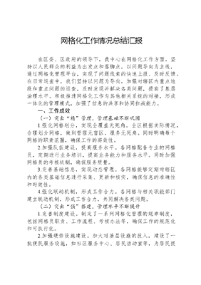 网格化工作情况总结汇报在区委、区政府的领导下,我中心在网格化工作方面,坚持以人民群众的利益为出发点和落脚点,以问题导向为主线,通过网格化管理平台,实现了问题线索的快速上报、及时反馈。在日常巡查中,我们坚持以问题为导向,加强对辖区内重点地段和重点问题的巡查,及时发现并解决各类问题,提高了基层治理水平。积极推进网格化工作与其他相关系统的对接,形成一体化的管理模式,加强了信息的共享和协同作战能力。一、工作成效(一)突出精管理,管理基础不断巩固1.强化网格划分,实现全覆盖无死角。全区根据实际情况,合理划分网格,做到管理无盲区,服务无死角。同时明确每个网格的职责范围,确保工作的高效性。2.加强队伍建设,提高服务水平。各网格配备专业的网格员,定期进行业务培训,提高业务能力和服务水平。同时加强网格员的考核机制,确保服务质量。3.完善基础信息,实现动态管理。各网格能够定期对辖区内的各类基础信息进行采集、更新和核实,确保信息的准确性和时效性。4.强化联动机制,形成工作合力。各网格与相关职能部门建立联动机制,形成工作合力,共同解决各类问题。(二)突出强搭建,管理水平不断提升1.完善制度建设。制定了一系列网格化管理的规章制度,包括网格员职责、工作流程、考核办法等,确保工作的规范化和可执行化。2.加强硬件设施建设。加大对基层设施的投入,建设了一批便民服务设施,如社区服务中心、居民活动室等,为居民提供更好的服务环境。3.强化宣传教育。通过各种渠道加强宣传教育,提高居民对网格化管理的认识和参与度,形成良好的社会氛围。(三)突出高高质量,社区治理更加智能1.加强信息化建设。引进先进的信息化技术,建立智慧社区平台,实现信息化、智能化管理。2.加强数据共享。加强与相关部门的沟通协调,实现数据共享,提高工作效率。3.加强智能化应用。在网格管理中广泛应用智能化设备和技术,如无人机巡查、AI识别等,提高管理效率和服务水平。二、存在问题一是部分地区网格划分不够合理,存在管理盲区。二是网格员队伍素质参差不齐,部分网格员服务意识不强、业务能力不足。三是信息化程度还不够高,部分地区仍存在信息化设备和技术应用不足的问题。三、下一步安排(一)持续推进精细化管理模式,提高工作效率1.进一步优化网格划分。网格是网格化管理的基石,合理的网格划分能够确保管理的精准性和服务的全面性。将根据区域实际情况和居民需求,持续调整和优化网格划分,确保每个网格的规模适中、功能完整,实现管理无盲区、服务无死角。2.强化联动机制,网格化工作不是孤立的,它需要各个部门之间的协同合作。将加强与公安、环保、市场监管等相关部门的沟通协调,形成工作合力,对于跨领域、跨部门的问题,能够迅速响应,有效解决。3.加强对基础信息的采集、更新和核实工作,基础信息的准确性是网格化工作得以顺利开展的前提,将不断完善信息采集和更新的机制,确保信息的准确性和时效性。同时也将加强对信息的核实工作,防止虚假信息的产生,确保信息的真实性和有效性。(二)不断强化队伍建设,提高服务质量1.加强网格员队伍建设。网格员是我们网格化工作的直接执行者,业务能力和服务水平直接影响到网格化工作的成效。将加大对网格员的培训力度,不仅注重政策法规知识的培训,还关注实操能力和服务技巧的提升,使其能够更好地履行职责,提高提业务能力和服务水平。2.完善考核机制,奖优罚劣。建立科学合理的考核机制,通过对网格员的表现进行量化评估,及时奖励优秀者,同时对表现不佳者进行惩罚和帮助,以激励网格员更好地履行职责。3.加强队伍建设和管理。注重人才的引进和培养,加强对网格员的管理和关心,保证队伍的稳定性和战斗力。同时关注队伍的职业发展路径,提供更多的发展机会和空间,激发工作热情和创造力。(三)加强信息数据利用,提升治理水平1.加强信息化建设和技术投入。充分利用现代信息技术,如云计算、大数据、人工智能等,提升管理效率和服务水平,进一步提高信息化程度和智能化应用水平。2.加强数据共享和应用。建立完善的数据管理制度,确保数据的准确性和安全性,加强数据的挖掘和分析,为决策提供科学依据,提高工作效率和服务质量。3.推广和应用智能化设备和技术。进一步推广和应用智能化设备和技术,如AI识别、无人机巡查等。提高管理效率,减少人力成本,同时提高服务质量和响应速度。2024年我们将继续共同努力,全面提升网格化工作的实效和服务质量,为建设和谐社区、推动全区高质量发展做出更大的贡献!