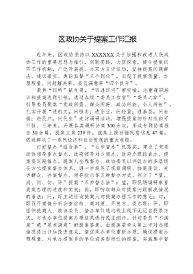 区政协关于提案工作汇报近年来,区政协坚持以XXXXXX关于加强和改进人民政协工作的重要思想为指引,创新实践,大胆探索,健全提案闭环工作机制,广泛开展提、办双方互评活动,坚持提案问题解决、建议落实、舆论监督三个到位,实现了提案质量、办理质量、问题解决率、委员满意率四个提升。聚焦四所献良策,四进四问察实情。注重履职培训和提案选题引领,通过各级委员工作室委员之家,引导委员聚焦党政所需、群众所盼、政协所能、个人所长,扎实开展进机关,问服务;进企业,问经营;进基层,问社情;进民户,问民生走访调研活动,增强提案的针对性和可行性。三年来,开展各类调研协商300余次,形成专题协商报告50余篇,提案立案239件,搜集上报社情民意信息47篇,促进解决了一系列经济和社会发展的重大难题。打好督办组合拳,五步督办抓落实。建立了党委政协领导重点督办、政府领导对口领办、政府办跟踪查办、提案委定期催办、提案人全程督办、政协委员以评促办的多层级全方位提案督办体系。进一步规范了视察调研、协商座谈、走访群众、并案督办、领导批示等五种督办方式。创立了望、闻、问、切、评提案五步督办法:望,即现场调研察看提案办理的进度和实效;闻,即听取群众对提案问题解决情况的看法;问,即主动征询提案人对提案办理工作的意见;切,即召开案情分析会查症结、商对策、开良方、促办理;评,即组织提案人、政协委员、督办单位通过线上线下无记名投票方式,对承办单位提案办理结果进行民主测评。针对委员不满意或基本满意的提案答复,由提案委牵头第三方对办理情况提出评估改进意见,督促承办单位重新办理,确保提案办理质量。对承办提案多的单位或类型相近的提案,实施集中督办,推进提案建议办结落实。五访五商促办理,四方会谈解难题。将民主协商贯穿提案工作全过程,在提、立、办等环节建立了五访五商机制,在提案撰写形成阶段,提案人专访政府有关部门,协商提案建议是否可行;在提案立案审查阶段,针对不规范提案,审查人员约访提案人,协商提案如何修改;在提案办理方面,要求承办单位将协商作为办理、答复、落实每个环节的前置条件,与提案人办前拜访、协商计划,办中走访、协商推进,办后回访、协商反馈。将提案办理情况融入党委政府综合考评内容,促进提案落地见效。在今年办结的提案中,五访五商率达94%。对牵涉部门多、办而未结的重点难点提案,启动四方会谈专项推进机制,联合相关领导、承办部门、党政督查部门、提案委员开展回头看现场视察督办,采取线上线下相结合的方式,集中会诊,解剖麻雀,分析症结,协商对策,先后推动解决了铁路斜交道口骑行隐患和城区部分路段路不平、灯不明、车辆堵、污水流等困扰群众多年的重大民生难题。完善制度强基础,实现提案双提升。深化与兄弟政协的协作交流,推动提案工作机制创新;建立委员沙龙协商议事平台,为委员明政情、讲真话、献良策营造宽松包容的协商氛围;编印上报提案督办协商报告,促进协商成果转化;加强提案信息化建设,注重提案工作宣传报道,提升委员履职的主动性和积极性。修订完善《关于提高提案质量的意见》等制度,将提案办理情况纳入党政督查考核内容,创新开展提案提、办双方互评活动,实现了提案质量和提案办理质量双提升。三年来,提案立案率逐年提升,提案问题解决率达94%,委员满意率达100%。