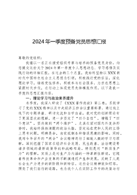 2024年一季度预备党员思想汇报尊敬的党组织:我谨以一名正在接受组织考察与培养的预备党员身份,向您提交这份关于2024年第一季度个人思想动态、学习感悟及实践行动的详细汇报。在过去的三个月里,我始终坚持以XXX新时代中国特色社会主义思想为引领,积极践行党的宗旨,深化理论学习,锤炼党性修养,积极参与社会服务,力求在思想上紧跟时代步伐,在行动上体现党员先锋模范作用。以下是我一季度的思想汇报内容。一、理论学习与政治素养提升本季度,我深入研读了《XXX著作选读》第二卷,系统学习了党的XXX精神以及中央经济工作会议重要部署。通过线上线下的专题讲座、研讨交流和自学自省,我对党的创新理论有了更深层次的理解,进一步坚定了四个自信,增强了四个意识,坚决做到两个维护。尤其在面对国内外复杂形势时,我始终保持清醒的政治头脑,坚定站在党和人民的立场上思考问题,明辨是非,自觉抵制各种错误思潮的影响。同时,我对今年召开的两会会议精神进行了细致入微的学习与理解,深刻把握了国家在经济社会发展、民生改善、法治建设等诸多领域的最新政策导向和战略布局。特别是对新质生产力的理解,实质上是对生产力内涵的一种革新性解读,它随着科技革命和产业变革的不断演进而产生和发展,反映了人类社会生产力进步的新阶段和新特征。这些会议精神犹如灯塔,照亮了我们前行的道路,也为我个人在实际工作中的决策与行动提供了明确的方向。二、党性锻炼与道德品行塑造作为预备党员,我深知党性修养是终身课题。一季度,我积极参与党组织生活,如主题党日活动、组织生活会等,通过批评与自我批评,深刻反思自身存在的不足,虚心接受同志们的建议,不断提升自我。面对工作中的困难与挑战,我从不退缩,总是挺身而出,积极寻求解决方案,展现出坚韧不拔的毅力和迎难而上的决心。这不仅是我个人职业素养的体现,更是对党对我悉心培养和深刻教育的回应。同时,我主动参与红色教育基地参观、党史知识竞赛等活动,从党的光辉历程中汲取精神力量,强化宗旨意识,牢记初心使命。在生活中,我严于律己,恪守社会公德、职业道德、家庭美德和个人品德,努力做一名忠诚干净担当的共产党员。三、工作实践与社会责任履行立足本职岗位,我将党的理论知识转化为推动工作的动力积极投身于各项业务工作中,勇于担当,敢于创新,力求在平凡岗位上创造不平凡业绩,展现预备党员的良好风貌。时刻牢记党的教诲,坚持吃苦在前,享受在后的原则,作为一名组工干部,我也深知自身肩负的责任重大,因此更加注重自我提升和完善。只有通过不断阅读和学习,才能拓宽视野,丰富知识储备,紧跟时代步伐。此外,我还积极响应党组织号召,参与志愿服务、社区治理、环保公益等社会实践活动,用实际行动践行全心全意为人民服务的宗旨。特别是在疫情防控常态化背景下,我主动报名成为社区志愿者,协助开展核酸检测、防疫宣传等工作,以实际行动诠释党员的奉献精神和社会责任感。四、存在问题与改进方向回顾一季度,尽管我在思想理论上有所进步,党性锻炼也取得一定成效,但在实际工作中仍存在理论联系实际不够紧密、服务群众的方式方法有待创新等问题。针对这些问题,我将在文可居文库——海量学习资料,手机电脑均可下载www.wenkeju.com下一阶段的学习工作中,更加注重理论与实践的深度融合,积极探索服务群众的新路径、新方法,不断提升服务效能。同时,我将持续加强自我监督,严守党的纪律规矩,始终保持清正廉洁,永葆共产党人的政治本色。总结而言,2024年第一季度,我作为一名预备党员,始终秉持对党的忠诚热爱,坚持理论学习,注重党性锻炼,积极投身社会实践,力求在思想上、行动上不断向合格党员标准靠拢。未来,我将以更高的标准要求自己,以更实的行动践行誓言,争取早日成为一名合格的共产党员,为实现中华民族伟大复兴的中国梦贡献自己的青春力量。文可居文库——海量学习资料,手机电脑均可下载www.wenkeju.com