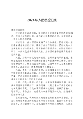 2024年入团思想汇报尊敬的团组织:时光的车轮滚滚向前,我们迎来了充满希望和机遇的2024年。在这个特殊的时刻,我怀着无比激动的心情,向团组织呈上这份入团思想汇报。回首过去,我对团组织充满了向往和崇敬。团组织是一座闪耀着理想光芒的灯塔,照亮了我前行的道路;团组织是一片充满生机与活力的沃土,培育着我们茁壮成长。在团组织的引领下,一批批优秀青年茁壮成长,为祖国的繁荣富强贡献着自己的力量。入团,乃是一份沉甸甸的责任,它承载着无尽的重量,意味着我将毅然肩负起为集体荣誉而全力拼搏的神圣使命。这份责任如同明灯,照亮我前行的道路,让我明白个人与集体的紧密相连,激励我为了集体的荣耀而不懈奋斗。入团,更是一种高远的追求,犹如璀璨星辰引领我前行。它鞭策着我不断超越自我,持续提升自身的素养和能力,向着更高、更远的目标奋楫笃行。这种追求赋予我无尽的动力,让我在成长的道路上不断追求卓越。入团,亦是一股强大的力量,仿若汹涌澎湃的浪潮,激励我在困境面前勇毅前行,决不退缩。这股力量给予我坚定的信念和无畏的勇气,让我在遇到困难和挑战时,能够坚守初心,迎难而上,勇往直前。它是我心中永不熄灭的火焰,燃烧着我的激情与斗志。在思想领域,我始终坚定地将团组织的理念奉为指引,全力以赴地培养自身的高尚品德与社会责任感。我会积极参与社区服务,关心弱势群体,为他们提供力所能及的帮助;又或是主动参与环保活动,倡导可持续发展,为保护环境贡献微薄之力。我时刻铭记团的宗旨,以实际行动践行社会责任,努力成为一个有担当、有情怀的人。在学业方面,我勤奋用功,孜孜不倦,潜心钻研学问,致力于提升自己的知识水平。课上,我全神贯注地聆听老师的讲解,踊跃参与课堂讨论,积极发表自己的见解。在数学课堂上,我会主动解答难题,与同学们分享解题思路;英语课上,我会积极参与角色扮演,提升口语表达能力。课后,我认真对待每一项作业,力求做到精益求精。同时,我广泛涉猎各类书籍,无论是文学名著、科普读物,还是历史传记,我都广泛阅读,以此持续拓宽自己的知识面。在生活之中,我注重自身的道德修养,尊重他人的意见和感受,与同学们团结友爱、和睦相处。我积极参与各种团队活动,在运动会上,我与同学们紧密合作,为班级荣誉而战;在社团活动中,我与伙伴们共同策划活动,锻炼组织能力。通过这些经历,努力培育自己的团队协作精神与沟通能力,学会理解和包容他人,不断提升自己的人际交往能力。然而,我也清晰地认识到自身存在诸多不足之处。在组织校园活动时,我发现自己在协调人员和资源方面还不够熟练,需要进一步提升组织能力。又如,在面对学习困难时,我有时会感到沮丧,缺乏更坚定的意志去克服困难。我深知自己还有很大的提升空间,需要不断努力,克服不足,成为更好的自己。团组织,是我心中永恒的向往和追求。我将以实际行动践行入团誓言,为团组织增光添彩!在未来的道路上,无论遇到怎样的风雨和挑战,我都将始终坚守入团的初心和使命。我相信,在团组织的培养和教育下,我一定能够成为一名优秀的共青团员,为实现中华民族伟大复兴的中国梦贡献自己的青春和力量!敬请团组织在实践中对我予以考验!汇报人:[你的姓名]文可居文库——海量学习资料,手机电脑均可下载www.wenkeju.com[具体日期]文可居文库——海量学习资料,手机电脑均可下载www.wenkeju.com