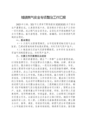 城镇燃气安全专项整治工作汇报2023年以来,XX市认真学习贯彻落实XXXXXX关于安全生产重要论述,认真落实党中央、国务院关于安全生产工作的一系列部署,成立燃气安全委员会,全面扎实开展城镇燃气安全专项整治,着力查隐患、补短板、堵漏洞,全力推进燃气领域安全稳定。一、基本情况(一)天然气运营管理情况。全市现有管道输送燃气企业X家,已建成管道均采用地埋式管道,共有天然气用户X户。(二)瓶装液化石油气运营管理情况。全市共有X家液化石油气钢瓶经营企业,共有用户X户。二、主要工作开展情况及成效(一)高位部署推动,健全一件事全链条管理机制。以消除监管空白、形成监管合力为重点,明确、分解、落实安全责任,强力推动专项整治。一是切实加强组织领导。市委、政府主要领导对燃气安全高度重视,多次现场督导调研、明确工作要求。成立了由市政府分管领导任组长的燃气安全委员会,组建燃气安全工作专班,完善工作规则,着力构建了主要领导亲自抓、分管领导具体抓、工作专班专门抓、重点部门协同抓的工作格局。先后召开专题推进会X次,始终以强有力的措施推进燃气安全专项整治落地见效。二是明晰压实责任链条。制定《X市城镇燃气安全隐患排查整治专项方案》,紧盯企业生产、充装、经营等重点环节和餐饮经营、学校、医疗等人员密集场所,逐项明确住建、市场监管、商务、公安等部门职能职责及重点任务,全面压实企业及各行业部门职责,确保专项整治始终有人抓、有人管。三是健全完善推进落实机制。建立健全分析、督导、调度、考核四项机制,将燃气安全专项整治纳入全市效能目标考核,完善考核细则,倒逼责任落实。督促指导企业建立健全安全生产、巡查巡检、人员培训、维护保养、值班值守、应急抢险、入户安检、客户服务、三类人员责任等工作制度,强力推动专项整治工作落实落细落到位。(二)全面起底排查,建立一本账全覆盖整改清单。坚持供给侧和用户侧同向发力,紧盯燃气生产、充装、配送、使用等关键环节,全面深入查漏洞、补短板、除隐患。一是全面排查风险隐患。深入全市燃气安全全链条使用场景,开展地毯式燃气安全隐患排查,精准掌握隐患底数。其中,燃气经营企业先后开展隐患排查X轮,共排查燃气场站X座;免费入户安检X万余户,累计排查居民用户安全隐患X条;排查餐饮经营等场所X户,全市燃气安全隐患排查实现全覆盖,为专项整治奠定坚实基础。二是全力推进整改整治。坚持隐患整改零容忍,实行清单管理、动态销号管理,分类制定整改方案,对一般安全隐患要求立即整改,对重大隐患挂牌督办彻底整改,切实从根本上消除事故隐患。截至目前,自查问题隐患整改率达到100%,国务院安委办反馈问题X条全部整改,国务院燃气专班督查检查反馈问题X条全部整改。三是建立防范长效机制。建立燃气安全风险隐患滚动排查机制,督促燃气和餐饮经营企业全面建立并严格落实安全生产主体责任,紧盯一线从业人员、安全员等重点岗位安全风险,开展全领域安全风险教育和应急处置技能培训X场,累计培训X余人次。督促燃气经营企业定期开展用户安检,指导企业建立安全风险隐患台账清单,落实闭环管理,不定期开展巡察检查,确保问题隐患消除在萌芽状态。(三)从严监督检查,强化一张网全过程监管体系。加大监督检查力度,严格监管、严肃执法、严厉处罚,释放越来越严的强烈信号。一是全面整顿燃气市场经营秩序。严格按照法律法规及标准规范要求,全面复核X家燃气企业经营许可、充装许可等证照,对企业人员证书、工程建设、设备检验、消防审验、安全管理制度等资料进行查验复审,淘汰基础差、安全管理水平低的企业X家,有力促进了燃气市场集约化、专业化发展。二是切实强化事中监管。重新梳理规范燃气企业资质审核流程,督促燃气企业严格落实持证上岗、实名制购气登记等制度,全面实行统一配送、统一管理、统一标准、统一服务。依法报废处理50k双阀液化石油气瓶X只,收缴报废、超期未检液化石油气钢瓶等问题气瓶X只。三是加强执法检查力度。2023年以来,全市共计开展执法检查X次,处罚燃气经营企业X家(次)罚金X万元,处罚充装及气瓶检验机构X家(次)罚金X万元,处罚燃气运输企业X家罚金X万元,破获涉燃气非法经营案件X起,捣毁非法储存甲醇燃料窝点X处,立案打击X处,抓获犯罪嫌疑人X人,切实形成高压震慑。检查燃气用具经营单位X家,检查燃气器具X个批次,立案查处X起经营不合格燃气用具案,罚没款X元,没收不合格产品X件。(四)注重系统施策,推进一盘棋全环节安全提升。强化统筹推进、标本兼治,多维度、多角度同向发力,不断筑牢安全防线。一是全力推进燃气具安全性能提升。聚焦燃气使用环节,全力推进燃气用户金属软管、报警器、紧急切断装置三件套安装,大力推进瓶改管、气改电,截至目前,全市累计完成三件套安装X户,燃气用户三件套安装率达到100%,完成餐饮用户瓶改管、气改