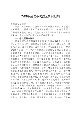 农村综合改革试验区情况汇报尊敬的各位领导:今天,X主席和各位领导从百忙之中抽出时间,来综改区视察调研,这既是对综改区发展的重视和关心,也是对我们工作的鼓励和鞭策。在此,我谨代表前线指挥部表示衷心感谢!借此机会,我就综改区建设有关情况作简要汇报。一、综改区基本情况综改区规划范围覆盖南路片区16个镇乡533平方公里45万人,分为核心区、辐射区和带动区。其中核心区包括7个镇乡36个村,幅员面积约100平方公里,有36344亩耕地, X户47122人,辐射区、带动区包括周边资源禀赋类同的9 个镇乡。受地理位置、资源条件等限制,区域发展水平总体滞后,特别是核心区7个镇乡36个村自我发展能力严重不足。一是自然资源禀赋差。地理位置偏远,位于X最南端,距县城50公里左右,是三市四县交界之处;属于X中深丘地区,山高沟夹,土多田少,人均耕地0.73亩,台地面积占比高达75%以上。二是基础设施弱。现有道路通行能力差,仍有132公里村社道路需硬化,社道路硬化率仅为39%;水利设施建设投入严重不足,山坪塘数量少、老化严重,硬化率仅为5%,农毛渠硬化率仅为8.4%,季节性缺水现象严重,靠天吃饭较为突出。三是公共服务水平低。仅有各类学校33所,现代教育设施缺乏,教育水平较低;医疗院所站18所,医疗设施严重不足,看病难的问题依然存在。四是人居环境差。有土坯房(含危房)4377户,占农房总数的28.8%;入户路硬化率、 小集中供水受益人口均不足10%;环境治理设施设备严重缺乏,村庄垃圾和污水基本处于直接排放。五是增收渠道窄。以传统种养殖为主,产业无规模、无特色、无优势。外出务工是主要收入来源,外出务工人数占劳动力71%以上,务工收入占总收入75.8%。20X年农民人均纯收入仅为7600元,低于全县平均水平25.3%,贫困发生率达18%。市委六届八次全会作出了建设农村综合改革试验区的决策,力争通过上下联动、改革创新,将综改区打造成农村改革先行区、X开发样板区、基层党建示范区,确保三年见到明显成效、六年与全市同步小康。二、综改区工作思路一是以产权制度改革为重点,增加农民财产性收入。开展七权同确试点工作,建立多权同确资源共享机制,年内完成综改区农村土地承包经营和小型水利工程产权确权颁证工作,集体建设用地使用权、宅基地使用权确权颁证工作完成50%以上。建立农村产权评估和交易平台,努力增加农民财产性收入。以适度规模经营为主导,鼓励综改区耕地、林地流转,对到综改区流转土地,发展规模经营的个人和企业,按规模给予奖励。在符合规划和用途管制的情况下,探索综改区集体经营性建设用地进入市场,与相同地段的国有建设用地同权同价。积极探索在城镇有固定住所的综改区农民向本区域其他农户出售农村住房所有权,探索建立宅基地使用权有偿退出机制。二是以创新金融服务为重点,建立社会化服务体系。创新金融服务,在综改区开展土地经营权、宅基地使用权等产权抵押贷款试点工作,建立风险担保基金,开展资金互助合作社试点,为综改区开发小康快车专项信贷产品。建立农业生产服务体系,建立和完善新型农资供应体系,推广农业病虫害统防统治,鼓励和支持建立农机合作社、劳务合作社、劳务服务公司,提供代耕代种代收服务。完善农业科技创新和技术推广体系,鼓励高等学校、科研院所科技人员到综改区以科技成果作价入股、兼职兼薪创业。完善农产品流通体系,在综改区开展电子商务进农村试点示范工作,促进农产品营销从传统模式向现代模式转变。三是以培育新型经营主体为重点,创新农业经营方式。创文可居文库——海量学习资料,手机电脑均可下载www.wenkeju.com新家庭经营方式,通过财政、税收、用地、金融、保险等多种措施支持家庭农场发展壮大。创新统一经营模式,落实集体经济组织土地所有者的权益,探索推进集体资产股份制改造,培育扶持农民合作社。创新利益联接机制,鼓励和支持城市工商资本到农村发展适合企业化经营的现代种养业,引导农业企业建基地、带农户,完善利益联接机制,促进农民持续增收,力争三年内综改区培育和引进龙头企业10家以上。创新投入方式,整合涉农项目资金,加强综改区沟、渠、水、路综合整治,搞好田型调整,为土地流转和规模化经营创造条件。四是以提升治理水平为重点,增强乡村发展活力。探索扩权强镇,下放部分县级经济社会管理权限,将综改区乡镇收取的土地出让金和城镇建设配套费返给乡镇用于场镇基础设施建设。推行贤能治村,鼓励外出创业成功人士回乡竞选村两委负责人。坚持依法治村,在综改区建立村委会法律顾问制度,制订村规民约。落实网格化管理制度,规范建设村一站两会,启动场镇小天网建设和群众十户联防,强化村民自治,切实提升基层治理水平。五是以公共服务均等化为重点,推进城乡一体化。推进公共服务均等化,提升综改区教育质量和水平,对综改区11所薄