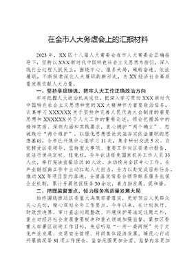 在全市人大务虚会上的汇报材料2023年,XX区十八届人大常委会在市人大常委会正确指导下,坚持以XXX新时代中国特色社会主义思想为指引,深入践行全过程人民民主,围绕中心、服务大局,砥砺奋进、依法履职,不断探索深化人大履职的新形式,为XX经济社会高质量发展贡献人大力量。一、坚持举旗铸魂,把牢人大工作正确政治方向牢牢把握人大政治机关定位。把深入学习贯彻XXX新时代中国特色社会主义思想和党的XX大精神作为首要政治任务,认真学习XXXXXX关于坚持和完善人民代表大会制度的重要思想和XXXXXX关于人大工作的重要论述,领会把握其中的精神实质、深刻内涵和实践要求,衷心拥护两个确立、忠诚践行两个维护。以强化思想理论武装夯实依法履职的思想基础,全年已开展中心组学习11次,集中研讨交流5次。自觉接受区委领导。坚持重大事项、重要工作向区委请示报告,依法行使决定权、任免权,全年依法任免国家机关工作人员33人次,举行宪法宣誓活动10人次。主动投身全区中心工作。在产业链招商工作中主动扛起人大担当,全力以赴完成目标任务,推动XX等项目签约落地。全面落实常委会领导联系服务包保企业机制,累计开展包保服务30余次,着力助发展、促和谐。二、把握监督重点,倾力服务高质量发展大局始终围绕推动区委重大决策部署落实,更好回应人民群众关心关切,精心谋划全年工作要点。今年以来,在计划执行、财政预决算、审计查出问题整改、环境保护等法定议题之外,重点对经济社会发展重要板块和重点领域加强监督,紧扣区委重大部署区政府工作目标,先后听取一府一委两院关于文化产业发展、交通安全管理、村级集体经济发展、暖民心行动开展情况等31项工作报告,监督范围更加全面、监督内容更加深入、监督效果更接地气。围绕打造最优营商环境,深度调研重点企业生产经营情况深入12家重点企业走访座谈,提出的提升发展动能、推动产业转型、创优营商环境和提升园区承载能力等方面建议,得到区政府及相关部门重视和采纳。关注亩均效益评价实施情况,督促政府加快提档升级,继续推动优质项目与优质资源要素精准匹配对接。重点调研金融支持地方经济发展情况,为提升金融造血功能,给实体经济发展注入金融活水出谋划策。持续关注乡村振兴工作开展情况,重点聚焦产业发展、农村改革、环境整治等方面加强监督。听取审议了村级集体经济发展情况的报告,强调要把发展村级集体经济作为实施乡村振兴战略的重要抓手。适时对当家塘清淤、供销合作社综合改革、小田变大田改革等涉农项目的实施情况以及农业产业化发展情况等开展专题调研,促进了农村基础设施建设、财政支农力度方面问题的解决。加强司法领域监督,努力让人民群众在每一个司法案件中感受到公平正义。对区法院行政审判工作、区检察院检察建议工作实施监督,促进法检两院更好维护国家和社会公共利益。持续推进代表建议与公益诉讼检察建议衔接转化工作机制有效运转,以人大+检察联合监督护民生,截至目前已成功转化建议28件,其中公益诉讼立案23件,发出检察建议23份。深入推进平安法治建设。开展打击治理电信网络诈骗违法犯罪工作调研,要求公安机关将打击治理电诈纳入重点工作,守好人民群众钱袋子。认真开展《消防法》《安徽省消防条例》一法一条例执法检查,对《专利法》《安徽省专利条例》以及《水污染防治法》贯彻实施情况开展执法调研,推动国家法律法规在本区域有效实施。严格落实省市人大部署要求,做好规范性文件集中入库工作,截至11月,共向市人大报送规范性文件6件,审查规范性文件1件。全力支持市人大基层立法联系点建设,强化硬件配备和资金保障。去年以来,文可居文库——海量学习资料,手机电脑均可下载www.wenkeju.com惠泉社区基层立法联系点已完成两部规范性法律文件的意见征集工作,上报书面意见10条。三、突出XX特色,着力提升监督工作质效在落实好年度各项任务目标的基础上,锚定特色工作寻求突破,着力提高监督权威和实效。一是深度开展专题询问。针对审计查出问题整改屡审屡犯现象,对2022年以来同级审查出问题整改责任落实情况进行专题询问,围绕审计整改工作认识不到位,部分问题整改不到位,整改工作缺乏刚性约束等焦点问题现场问询,提出要提高对审计整改的认识,抓好重点问题整改,健全审计整改长效机制,促进审计查出问题整改工作举一反三,落实落细。二是精心实施工作评议。围绕市人大常委会一县区一品牌部署要求,着力将人大工作评议打造成精准监督、有效监督的强有力抓手。严格落实新修订的《区人大常委会工作评议暂行办法》,突出各环节和流程质量把控,通过多层面座谈、多方位走访、多角度评议,对区农业农村局工作工作进行客观评价,对存在的问题把脉、开方。提出了25条具体整改意见,督促其限期整改并向常委会报告整改结果。三是做好监督后续文章。对《全区第三产