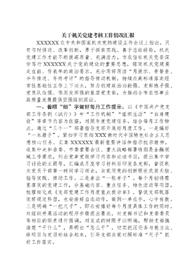 关于机关党建考核工作情况汇报XXXXXX在中央和国家机关党的建设工作会议上指出,只有与时俱进、改革创新,勇于探索实践、善于总结经验,机关党建工作才能不断提高质量、充满活力。市农信社机关党委深学笃行XXXXXX关于党的建设的重要思想,锚定机关党建要走在前、作表率的政治要求,充分用好用活月提示、季督查、半年推进、年终考评的指导推动机制,持续在高标准落实经常性基础性工作上下功夫,努力创建政治功能强、支部班子强、党员队伍强、作用发挥强的基层党支部,为推动全市农信事业高质量发展提供坚强组织保证。一、着眼细字做好每月工作提示。以《中国共产党支部工作条例(试行)》中工作机制组织生活自身建设等章节内容为依据,对照年度党建任务,结合每月工作特点,通过三个一部署指导支部开展好月度工作。一是编好一本册子。紧扣学习贯彻XXX新时代中国特色社会主义思想核心任务,汇集XXXXXX最新重要讲话和指示批示精神,收集中央和省委、市委重要会议、重大战略部署特别是金融领域工作要求,列出党章党规学习内容和必读书目,提出集中学习讨论的主题等,汇编成月度学习材料后印发各支部,督促机关党员干部第一时间学习领会,自觉用党的创新理论武装头脑、指导实践、推动工作。二是拿出一张单子。每个月初将需要落实的党建工作,分基础内容、重点任务、特色活动等项目,梳理细化成《支部党建工作月度重点提示单》,督促支部既落实好规定科目,也安排好自选动作,做到一单在手,心中有数。三是明确一把尺子。即在安排好每个月度具体工作的同时,对组织开展活动的程序步骤提出要求,对支部书记和支委委员等相应的职责进行强调,对完成的时限予以明确,帮助支部搞清楚干什么,弄明白怎么干,切实把压任务与教方法、给项目与定目标结合起来,引导支部自觉对照标准尺子抓好工作落实。二、围绕全字组织每季工作督查。坚持对支部工作开展全覆盖、全纳入、全参与的季度督查,以考评抓在平时的工作机制,形成支部精力用在经常的工作导向。一是实现支部督查全覆盖。每季度成立由机关党委负责人牵头、专职党务干部组成的工作组,对32个党支部逐个进行督查。XX片20个支部,统一时间、集中组织实施。对常年担负巡察、审计任务的XX片外12个党支部,采取分组直接到任务现场检查和线上审核查阅党建活动资料相结合的方式进行,确保所属支部每个季度至少检查指导一遍。二是坚持内容督查全纳入。对照党支部标准化建设和规范化工作要求,围绕该季度三个月提示单安排的工作内容,制定详细的督查清单,在突出检查基本制度落实情况、重点任务完成情况的同时,把党员是否按时足额交纳党费、学习强国活跃度、党务公开事项等,全部纳入督查内容,一项一项查,一件一件过,推动支部工作全面抓紧、整体提升。三是坚持人员督查全参与。机关党委季度督查前,要求支部发动全体党员先开展自查,对照标准查漏补缺。督查过程中,关注所属普通党员职工,通过调取各类学习平台数据、谈心谈话等,掌握支部六必讲五必谈三必访等经常性思想工作落实情况,把支部管到人头的要求转化为支部建设靠大家、支部工作人人抓的内向合力。三、紧扣实字组织半年工作讲评。每年7月份年度工作承上启下之际,按照支部自行组织回头看、机关党委统一安排期中考、全员集中召开点评会的步骤,推进机关党建提质增效。实践中把握好三实要求:一是把问题讲实。在全面通报上半年基层党建工作情况的基础上,坚持问题导向,分类实施。其中对季度督查、日常检查过程中发现的共性问题,逐项列出,要求对号入座反思整改;对个别存在的个性问题,点对点进行讲评通报;对发现和反映的疑难问题,组织力量集研究攻关,明确具体解决路径,确保半年讲评会成为抓好党建工作落实的动员会、推进会。二是把责任压实。讲评文可居文库——海量学习资料,手机电脑均可下载www.wenkeju.com工作突出抓书记、书记抓。机关党委召开专题会议,对半年党建工作进行全面总结,重点对支部书记履职情况进行分析。机关年中工作总结会议上,首先听取支部书记半年来党建工作开展情况汇报。党委分管领导到所在支部帮助分析半年党建工作落实情况,与支部书记谈心交心。对工作靠后、问题较多的部门,党委主要负责人约谈所在支部书记,提出严肃要求,确保层层压实主体责任。三是把整改抓实。按照事事有回应、件件有着落的要求,抓好问题整改下篇文章。对半年来支部工作中存在的问题,限定时间完成整改,并作为下半年工作督查和年度考核的重点内容。对党务工作能力偏弱、问题较多的支部,指导制定改进措施,持续跟踪整改情况,通过重点帮带,实现赶队进位,使半年支部工作讲评形成有效闭环,扎实推进党建工作落实。四、坚持严字开展年终工作考评。机关党建工作考核评价,既是全面从严治党向纵深推进的有力抓手,又是检验