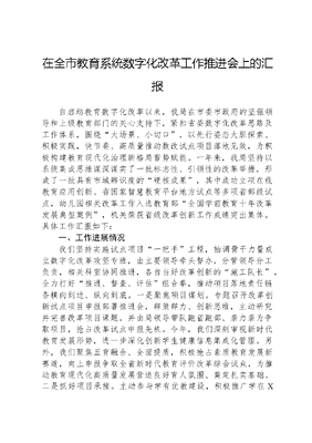 在全市教育系统数字化改革工作推进会上的汇报自启动教育数字化改革以来,我局在市委市政府的坚强领导和上级教育部门的关心支持下,紧扣省委数字化改革思路及工作体系,围绕大场景、小切口,以先行姿态大胆探索、积极实践,快节奏、高质量推动数改试点项目落地见效,为积极构建教育现代化治理新格局蓄势赋能。一年来,我局坚持以系统集成思维谋深谋实了一批标志性、引领性的改革举措,形成了一批具有市域辨识度的硬核成果,其中成功立项在线教育应用创新、省国家智慧教育平台地方试点等多项省部级试点,幼儿园相关改革工作入选教育部全国学前教育十年改革发展典型案例,机关荣获省级改革创新工作成绩突出集体。具体工作汇报如下:一、工作进展情况我们坚持实施试点项目一把手工程,抽调骨干力量成立数字化改革攻坚专班,由主要领导牵头督办,分管领导分工负责,相关科室协同推进,各自当好改革创新的施工队长,全力打好推进、督查、评估组合拳,推动项目落地责任链条横向到边、纵向到底。一是聚焦项目谋划。专题召开改革创新试点项目申报部署推进会,群策群力、创新思维,主动研究并完善改革项目课题。并由局领导带队跑省跑部、亲力亲为争取项目,抢占改革试点申报先机。今年,我们深刻审视新时代教育发展形势,进一步深化创新学生健康信息集成化管理。另外,我们聚焦五育融合、全面提质,积极抢占素质教育发展新赛道,向上申报争取全省新时代教育评价改革综合试点,为推动教育现代化高质量发展营造良好育人氛围、奠定扎实基础。二是抓好项目承接。主动参与学有优教建设,积极推广学在X应用,助力省级重大应用贯通实施。截至目前,我市承担同步课堂建设X项,实现教共体课程联盟全覆盖,创建网络名师工作室X个。双减应用场景持续深化,课后服务1+X模式课程体系提质增效,减负成果日益巩固。三是攻坚项目落地。挂图作战定好改革任务路线图和总基调,定期组织工作例会研究项目进展、存在问题和目标任务,集中攻关、抓好落实,有效形成工作、政策合力,协同推进试点项目。并明确以实绩论英雄的考核导向,通过绩效跟踪、考核评比等方式,系统上下全面掀起人人讲创新、处处有创新的攻坚热潮。二、存在问题数字化改革是一场重塑性的制度革命,在项目高效推进过程中,我们同样清醒地看到了当前存在的短板和不足,主要表现在以下三个方面。一是干部队伍的数改思维仍需提升。随着改革的日益深入,话语体系、方法路径、理念思路等都在不断丰富完善,尽管我市已开展了相关业务专题培训,但总体来说干部队伍在主动适应、跟上数字化改革的干事思维、素质能力上,不同程度存在着短板弱项,这需要我们进一步加深对数改本质的理解和把握,跳出思维定势和路径依赖,以新视角、新高度牵引带动教育智治。二是工作推进的协同性还需增强。目前各县市区在承接建设中,仍存在层级分工不清晰、建设内容有重复、资金投入难确定等问题。同时涉及相关业务部门缺乏协同、信息安全存在风险、开放平台无法融合等数据壁垒问题严重制约基层数字化改革的可持续性。三是技术力量的支撑有待加强。目前我市对于数字化改革谋划较多,但由于缺乏专家团队指导、资金技术等支持,导致思路到系统转化的效率还比较低,形成具备引领性、示范性、典型意义的场景还不够多,对管理、教学、家校互动的贯通尚显不足,需要进一步做深做实提炼完善、增量开发的改革文章。三、下阶段工作思路下阶段,我局将认真贯彻本次会议精神,突出整体智治文可居文库——海量学习资料,手机电脑均可下载www.wenkeju.com唯实惟先改革理念,继续抢抓数字化转型战略机遇,全面加快推进教育信息化步伐,以改革创新和试点实践为全市教育高质量、跨越式发展注入更强动力。一是迭代升级,深化多跨协同新场景。基于我市教育资源整体规划滞后于人口集聚变化的现实背景,上阶段我们已积极研发搭建资源保障动态监测平台,对全市中小学校网布局、学位数量、校舍建设、师资结构、装备配备、经费投入等相关数据进行统一归集,建立教育大数据集成管理平台,系统架构数据驾驶舱。后期我们将进一步开发完善相关应用场景,引入学区地图、深化评价体系,对接开展数据关联分析,确保数据真实、及时更新,让驾驶舱可监测、会预警、善分析、能指挥,为服务教育现代化发展水平监测、基础教育生态监测两大监测提供可视化技术支持和决策保障。二是高标推进,系统打造牵一发动全身标志性新成果。一是省市合作,实施规模化应用。以师生身份认证识别为小切口,贯通智慧校园、托管服务、培训监管、社会实践、疫情防控等多跨场景应用,构建政府引导、企业参与、师生家长受益的教育服务生态圈。二是接轨国际,打造开放办学新格局。以教师海外培训、华文教育需求为小切口,探索新阶段国际合作形式,与匈牙利罗兰大学合作共建丝路学堂,全员开展英语教师国际培训,特色开展国学课程海外送教,以更为先行