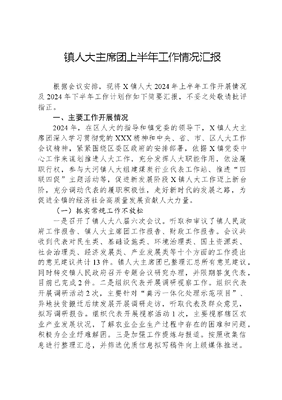 镇人大主席团上半年工作情况汇报根据会议安排,现将X镇人大2024年上半年工作开展情况及2024年下半年工作计划作如下简要汇报,不妥之处敬请批评指正。一、主要工作开展情况2024年,在区人大的指导和镇党委的领导下,X镇人大主席团深入学习贯彻党的XXX精神和中央、省、市、区人大工作会议精神,紧紧围绕区委区政府的安排部署,依据X镇党委中心工作来谋划推进人大工作,充分发挥人大职能作用,依法履职行权,参与大河镇人大组建煤炭行业代表工作站、推进四联四促主题活动等,促进新发展阶段X镇人大工作迈上新台阶,充分调动代表的履职积极性,走好新时代的发展之路,为促进全镇的经济社会高质量发展贡献人大力量。(一)抓实常规工作不放松一是召开了镇人大八届六次会议。听取和审议了镇人民政府工作报告、镇人大主席团工作报告、财政工作报告。会议共收到代表对民生类、基础设施类、环境治理类、国土资源类、社会治理类、经济发展类、产业发展类等十个方面的工作提出的意见建议共计13件。镇人大主席团已整理汇总所有意见建议,同时转交镇人民政府召开专题会议研究办理,并限期答复代表,目前已完成2件。二是组织代表开展调研视察工作。组织代表开展调研活动2次,主要针对粪污一体化处理示范项目、异地扶贫搬迁后续发展开展调研走访,听取代表及群众意见,拟写调研报告。组织代表开展视察活动1次,主要视察辖区农业产业发展状况,了解农业企业生产过程中存在的困难和问题,积极为企业纾难解困。三是加强工作提炼与报道。按照收集信息进行整理汇总,并筛选优质信息拟写稿件向上级媒体推送。半年来,在区级及以上发表信息报道6篇,其中《天眼新闻》1篇、市人大官网发布4篇、X融媒1篇。(二)抓常四联四促活动不放松一是对照清单有条不紊地开展代表学习培训。组织各村(社区)人大代表,持续开展党的XXX精神、全国两会精神及代表履行职责相关法律法规等主题学习宣传宣讲,进一步加深代表对理论知识的理解,促使代表充分履职尽责。今年以来,共举办培训学习4场,覆盖代表60余人次;代表在辖区内开展各类主题宣传38场,主题宣传覆盖群众1000余人次。二是收集台账实事求是地留存印证资料。定期分类收集各村(社区)报送的各类台账,包括社情民意、四联四促等台账,按照台账数据汇总每月四联四促活动推进情况统计表,收集留存印证资料。三是制定计划实事求是的接待选民群众。通过活动收集社情民意,做体察民情的有心人、反映民意的代言人、为民服务的贴心人。1-5月份以来,11个村(社区)人大代表共收集社情民意100余条,已全部办理,代表进站接待选民群众600余人次,走访联系选民50余人次,走访企业3次,群众反映问题21个,召集代表议事1次,解决群众身边实事100余件,镇代表联络站统筹协调解决一月一事共5件,群众满意率100%。(三)抓好特色亮点不放松根据《X区人大常委会关于组建产业行业代表工作站的实施方案》,X镇参与大河镇联合,根据辖区煤矿企业多的特点,建立行业代表工作站于大河。同时,依托四联四促活动中的村企联动代表联络室,时刻关注矿区企业在生产经营中遇到的困难,充分发挥辖区代表密切联系矿区企业的优势,积极收集各类矿区意见建议,为矿区企业、矿区群众解决实际问题。如今年一月,区人大代表、镇人大代表共同组织镇艺煤矿与新塘村八组村民就工伤赔偿事宜进行协商,确保农民工权益,营造良好的矿群关系;今年三月,代表走访了解配煤厂施工安全文可居文库——海量学习资料,手机电脑均可下载www.wenkeju.com措施落实情况,同时帮助配煤厂协调农户土地建设基础设施。过去半年来,我镇人大工作取得了一定的成绩,为X镇经济社会和谐稳定发展贡献了人大力量,但我们的工作离全面依法治国的新要求、人民群众对民主法治建设的新期待,还有较大的差距,仍需不断改进和提高。还需再加强与区人大及其他乡镇人大的沟通联络,虚心请教、借鉴其他兄弟乡镇的丰富经验,不断完善自我。二、存在问题一是乡镇人大代表以农民居多,外出务工的部分代表几乎没时间参加活动;留在家中的代表大部分都是乡村干部,分布在不同岗位,从事不同职业,对活动的参与度不高,代表整体素质有待进一步提高。二是乡镇人大代表意见建议办理质量有待提高。存在重答复,轻落实的问题。主要由于大多数代表所提的意见和建议大局意识不够,只立足于一村一组,大多局限于要钱要物办实事。受制于镇级财力,绝大部分代表提出的议案建议都难以落实,只好在书面答复上多下功夫,让代表能予谅解,一年不办,下年又提的现象时有发生,代表议案建议的积极性受到打击。三、下一步工作打算一是抓准做实谋划长效,扎实办好民生实事。以一听、二看、三议、四办,一清单一档案四台账等工作机制为抓手,推进代表接待走访工作。定时、定点在代表联络室接待选民群众,定期召集代表开展企业走访、