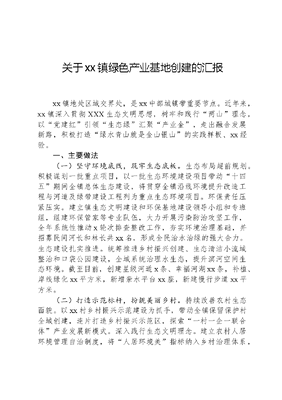 关于xx镇绿色产业基地创建的汇报xx镇地处区域交界处,是xx中部城镇带重要节点。近年来,xx镇深入贯彻XXX生态文明思想,树牢和践行两山理念,以党建红引领生态绿汇聚产业金,走出融合发展新路,积极打造绿水青山就是金山银山的实践样板、xx经验。一、主要做法(一)坚守环境底线,筑牢生态底板。生态布局超前规划。积极谋划一批重点项目,以一批生态环境建设项目带动十四五期间全镇总体生态建设,将贯穿全镇沿线环境提升改造工程与河道及绿带建设工程列为重点生态环境项目。环保责任压紧压实。建立镇生态文明建设和环保基地建设领导小组和专班组,组建环保管家等专业队伍,大力开展污染防治攻坚工作,全年系统性推动x轮次排查整改工作,夯实环境治理基础,并招募民间河长和林长共xx名,形成全民治水治绿的强大合力。生态建设扎实推进。统筹推进乡村振兴创建、生态清洁小流域整治和口袋公园建设,全域系统治理水生态,提升滨河空间生态环境。截至目前,创建星级河道x条、幸福河湖xx条,补植、岸线绿化xx平方米,新增亲水平台xx座,新建慢行步道xx平方米。(二)打造示范标杆,扮靓美丽乡村。持续改善农村生态面貌。以xx村乡村振兴示范建设为抓手,带动全镇保留保护村全域创建,连片打造乡村振兴示范区,探索一村一企一联合体产业发展新模式。深入践行生态文明理念。建立农村人居环境管理自治制度,将人居环境美指标纳入乡村治理体系,制定村规民约,通过智慧化乡村治理手段引导广大村民逐步养成自觉爱护家园、自发保护生态的良好习惯。加快发展生态农业产业。引入盒马鲜生产业基地,打造基于订单农业的盒马村模式,并加快模式推广,促进传统农业向数字化、生态化产业升级。提速推进千亩蔬菜产业园、绿色田园综合体等现代农业产业项目,推动环境和产业的双向高质量发展。(三)引导低碳转型,推动绿色发展。点燃两山创建引擎。立足资源禀赋和生态优势,构建具有本地特色的两山转化政策和制度体系,探索有效成果转化路径,规划建设生态空间保护、环境质量改善等x类xx个工程项目,绘就靓丽生态底色,让绿色发展持续释放生态红利。激活绿色发展动能。加快推动发展方式绿色转型,保持腾笼和换鸟双轮驱动,推进在线新经济企业建设,构筑经济高质量发展新动能。弘扬低碳生活新风。倡导简约适度、绿色低碳的生活方式和消费模式。因地制宜推进农村湿垃圾就地循环处理,成功创评市首批生活垃圾分类示范街镇,并试点打造一批低碳社区,倡导全民共同参与低碳发展。二、取得成效(一)污染治理成效显著。空气质量持续改善,2023年空气质量优良天数达xxx天,占比xx%;PM2.5年均浓度xx微克/立方米,同比下降xx%,重度污染天数x天。生活垃圾智能分类实现全覆盖,全镇投放垃圾桶配套芯片x万套,治理实践事迹被xx家主流媒体先后报道。(二)腾笼换鸟转型升级。关停、整改高污染、高能耗和散乱污企业xx家的同时,主动推进经济绿色转型。依托跨境电商产业生态链,打造数字贸易产业服务基地,入驻xx家企业,2023年全年产税约xxx万元,培育电商专业人员xx人;打造国内首个大宗农产品交易一站式电商+物流平台;打造智能建筑数字化共享平台,搭建智能建筑行业生态圈,平台认证会员xx家,日均交易额超xx元。文可居文库——海量学习资料,手机电脑均可下载www.wenkeju.com(三)生态赋能乡村振兴。以品牌+主体+基地为框架,集中连片打造乡村振兴示范区。xx村坚持生态靓村、产业兴村,1+2+2产业带动村民就业xxx人,实现农民增收近xx元;xx村探索工业反哺农业新途径,农业基地促每年人均增收xx万元;xx村建设千亩蔬菜产业园,加快打造都市现代绿色农业。全镇所有村不断健全完善一村一企一联合体发展模式,让资源变资产、资金变股金、农民变股东,让绿水青山变金山银山。三、经验启示(一)坚持一体推进,统筹谋划生态建设全局。坚持镇党委主导作用,深刻把握生态文明建设政治使命,持续抓机制强保障,不断强化调研破题,在相关块面各负其责、同向发力的过程中,推动打造绿色发展转化样板。(二)坚持多方共治,充分激发群众参与意识。充分发挥基层党组织战斗堡垒和书记头雁作用,积极发动群众,紧紧依靠群众,依托积分制、六长制等共治模式,把人居环境美作为积分评定重要依据,让群众成为生态环境保护的参与者和受益者,让两山理念深入人心。(三)坚持科技赋能,大力推动产业转型升级。紧跟时代发展潮流,依托科技手段创新生态治理模式,积极鼓励传统产业推进经济绿色转型,重点打造龙头带动+新零售、跨境电商和直播电商、智慧物流、在线金融等新兴模式。文可居文库——海量学习资料,手机电脑均可下载www.wenkeju.com