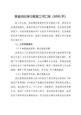 某县党纪学习教育工作汇报(3095字)自4月以来,我县高度重视党纪学习教育工作,将其作为加强党的建设、推进全面从严治党的重要举措。在县委的坚强领导下,全县各级党组织和广大党员干部积极参与,扎实推进党纪学习教育各项任务,取得了阶段性成效。现将工作开展情况汇报如下:一、工作开展情况(一)加强组织领导,精心谋划部署县委成立了以县纪委书记为组长的党纪学习教育领导小组制定下发了《关于在全县开展党纪学习教育的实施方案》,明确了学习教育的目标任务、方法步骤和工作要求。各级党组织也相应成立了领导机构和工作机构,制定了具体的学习计划和措施,确保了学习教育有组织、有计划、有步骤地推进。(二)丰富学习内容,提升思想认识我们紧紧围绕新修订的《中国共产党纪律处分条例》《中国共产党章程》《中国共产党廉洁自律准则》等党规党纪重点内容,通过集中学习、个人自学、专题辅导、交流研讨等多种方式,组织广大党员干部深入学习。结合党纪学习教育,组织党员干部参观党性教育基地,学习党的光辉历史和优良传统和典型案例,进一步增强了党员干部的党性观念和纪律意识。(三)创新学习方式,增强教育效果为了提高学习教育的吸引力和感染力,不断创新学习方式一是利用新媒体平台,开设党纪学习教育专栏,定期推送学习资料和学习心得,方便党员干部随时随地进行学习。开展党纪知识竞赛、演讲比赛、文艺演出等活动,以生动活泼的形式宣传党纪知识,营造了浓厚的学习氛围。组织党员干部参观警示教育基地、观看警示教育片,通过真实案例和反面教材,教育引导党员干部汲取教训、引以为戒。(四)强化监督检查,确保学习质量县委成立了督导组,定期对各级党组织的学习教育情况进行督导检查,及时发现和解决存在的问题。建立了学习教育考核评价机制,将学习教育情况纳入年度xx工作考核和干部考核评价体系,对学习教育不认真、走过场的单位和个人进行严肃问责,确保了学习教育的质量和效果。二、取得的成效(一)党员干部的纪律意识明显增强通过党纪学习教育,广大党员干部对党的纪律和规矩有了更加深刻的认识,增强了遵守纪律的自觉性和坚定性。大家深刻认识到,纪律是党的生命线,是党的事业取得胜利的重要保文可居文库——海量学习资料,手机电脑均可下载www.wenkeju.com证,必须严格遵守党的纪律和规矩,做到对党忠诚、为党分忧、为党尽责、为民服务、清正廉洁。(二)党内政治生态持续优化党纪学习教育的深入开展,促进了党内政治生活的严肃规范,增强了党组织的凝聚力和战斗力。各级党组织严格执行民主集中制、三重一大决策制度等,认真开展批评和自我批评,坚决克服形式主义、官僚主义等不良作风,营造了风清气正的党内政治生态。(三)推动了各项工作的顺利开展党纪学习教育与中心工作紧密结合,相互促进。广大党员干部将学习教育中激发出来的热情和干劲转化为推动工作的强大动力,在xx、乡村振兴、生态环保、项目建设等重点工作中发挥了先锋模范作用,推动了各项工作的顺利开展。三、存在的问题(一)个别党组织重视程度不够。在开展党纪学习教育活动中,我们发现部分党组织对于这项工作的重要性认识不足,没有将其作为提高党员党性修养和纪律观念的重要途径来抓,缺乏深入细致的工作计划,党纪学习教育的内容未能紧密结合党员的实际工作和生活,导致党员难以将学到的知识和规范应用到具体实践中。在对党纪学习教育工作的检查评估中,存在文可居文库——海量学习资料,手机电脑均可下载www.wenkeju.com一定程度的宽松软态度,缺乏刚性约束和激励措施。(二)部分党员干部学习积极性不高,存在被动学习、敷衍学习的情况。部分党员干部可能对党纪学习的重要性认识不足,没有将学习看作是提高自身政治素养和业务能力的必经之路,没有真正完全吸收知识和内化行为准则。有的党员干部难以抽出足够的时间进行学习,每个党员的学习风格和需要都不相同,无法满足不同党员的个性化学习需求。(三)学习教育的方式方法还不够丰富多样,缺乏针对性和实效性。依赖于传统的课堂讲授和书面材料学习,内容呈现方式单调。在安排学习内容时,有的党组织未能紧密结合党员的实际工作情况和需求,导致学习内容与实际应用脱节。(四)学习教育与实际工作结合不够紧密,存在学用脱节的现象。有的党组织注重理论知识的传授,而忽略了与实际工作的紧密结合。学习的内容往往停留在理论层面,缺乏与党员实际工作场景相结合的案例分析、实际操作等实践性内容。有的党员在参与学习教育后,没有及时将所学内容转化为实际行动,体现在日常工作和行为中。四、下一步工作打算(一)进一步加强组织领导各级党组织要切实担负起主体责任,党组织书记要履行好文可居文库——海量学习资料,手机电脑均可下载www.wenkeju.com第一责任人职责,亲自谋划、亲自部署、亲自推动党纪学习教育工作。各级党组织要深刻认识到将学习教育