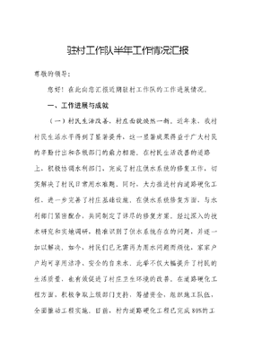 驻村工作队半年工作情况汇报尊敬的领导:您好!在此向您汇报近期驻村工作队的工作进展情况。一、工作进展与成就(一)村民生活改善,村庄面貌焕然一新。近年来,我村村民生活水平得到了显著提升,这一显著成果得益于广大村民的辛勤付出和各级部门的鼎力相助。在村民生活改善的道路上,积极协调水利部门,完成了村庄供水系统的修复工作,切实解决了村民日常用水难题。同时,大力推进村内道路硬化工程,进一步完善了村庄基础设施。在供水系统修复方面,与水利部门紧密配合,共同制定了详尽的修复方案。经过深入的技术研究和实地调研,精准识别了供水系统存在的问题,并逐一加以解决。如今,村民们已无需再为用水问题而烦忧,家家户户均可享用洁净、安全的自来水。此举不仅大幅提升了村民的生活质量,也有效促进了村庄卫生环境的改善。在道路硬化工程方面,积极争取上级部门支持,筹措资金,组织施工队伍,全面推动工程实施。目前,村内道路硬化工程已完成80%的工程量,预计将于本月底全面竣工。届时,村民们将享受到更加平坦、宽敞的道路,出行将更加便捷、高效。同时,道路硬化工程也将进一步美化村庄环境,提升村庄的整体形象。此外,还积极推动其他各项惠民举措的落实。例如,加大了村庄环境整治力度,清理了垃圾、疏通了河道;加强了文化教育建设,建设了图书室、篮球场等文化设施,为村民们提供了更为丰富的精神文化生活。(二)产业发展势头强劲,村民收入稳步增长。深知产业发展是提升村民收入、推动村庄持续发展的关键。因此,立足本村实际,深入挖掘产业潜力,努力打造具有地方特色的产业体系。在农业方面,积极推广先进的农业技术和管理经验,引导村民发展高效农业。通过引进新品种、推广新技术,成功提高了农作物的产量和品质,为村民带来了实实在在的收益。同时,还大力发展养殖业,鼓励村民养殖特色家禽家畜,进一步拓宽了村民的收入来源。在乡村旅游方面,充分利用本村优美的自然风光和独特的民俗文化,打造了一系列具有吸引力的旅游项目。通过举办乡村旅游节、民俗文化展示等活动,吸引了文可居文库——海量学习资料,手机电脑均可下载www.wenkeju.com大量游客前来观光旅游,为村庄带来了可观的经济收入。此外,还积极探索电商、直播带货等新型销售模式,帮助村民将农产品销往全国各地。这些举措不仅拓宽了村民的销售渠道,也提高了产品的知名度和竞争力。(三)乡村治理水平提升,村民自治意识增强。在驻村工作队的积极推动下,村的乡村治理工作取得了显著成效。注重发挥村民自治的作用,加强村民自治组织的建设,完善村民代表会议制度,确保村民在村级事务中的主体地位。同时,加强了对村级事务的监管,规范了村务公开制度,提高了村级事务的透明度和公正性。在乡村治理方面,积极推动法治乡村建设,加强村民法治教育和法律服务,提高了村民的法律意识和维权能力。通过举办法治讲座、法律咨询等活动,普及了法律知识,引导村民依法办事、依法维权。此外,还注重发挥村规民约的作用,引导村民自觉遵守村规民约,共同维护乡村秩序。在村民自治意识方面,通过开展各类宣传教育活动,增强了村民的自治意识和参与意识。村民们积极参与村级事务的讨文可居文库——海量学习资料,手机电脑均可下载www.wenkeju.com论和决策,为村庄的发展贡献了自己的智慧和力量。同时,还鼓励村民积极参与志愿服务活动,发挥个人优势为村庄建设贡献力量。这些举措不仅增强了村民的归属感和责任感,也促进了村庄的和谐稳定。(四)文化活动丰富多彩,村民精神面貌焕然一新。一个村庄的繁荣与发展,不仅体现在物质层面的提升,更体现在村民精神面貌的改善。因此,在驻村工作过程中,高度重视文化建设,通过举办一系列丰富多彩的文化活动,让村民在享受文化盛宴的同时,也提升了自身的文化素养和审美情趣。充分利用村级文化活动中心、图书室等场所,开展阅读推广、书法绘画、音乐舞蹈等文化培训活动,引导村民积极参与,激发他们的学习热情和创造力。同时,还邀请专业文化团队进村演出,为村民带来精彩的戏曲、歌舞等表演,丰富了村民的精神文化生活。在传统节日期间,精心组织庆祝活动,如春节联欢会、元宵节灯会等,让村民在欢乐祥和的氛围中感受到传统文化的魅力。此外,还结合村庄实际,开展特色文化节庆活动,如乡文可居文库——海量学习资料,手机电脑均可下载www.wenkeju.com村旅游文化节、民俗文化展演等,展示村庄独特的文化魅力,吸引更多游客前来观光体验。二、下一步工作计划将继续巩固和拓展现有工作成果,进一步推动村庄各项事业的发展。(一)深入入户走访,深入了解村民的需求。广泛听取村民的意见和建议,为下一步的工作提供更加精准的方向和目标。通过实地走访、座谈交流等方式,与村民面对面交流,深入了解他们的生活状况、产业发展情况、文化需求等方面的信息。同时,将村民的意见和建议汇总整理,形成