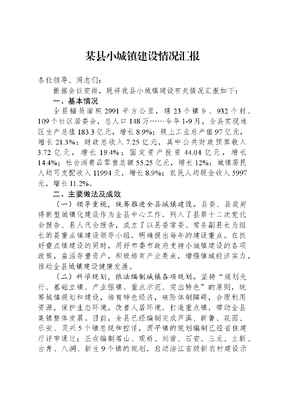 某县小城镇建设情况汇报各位领导、同志们:根据会议安排,现将我县小城镇建设有关情况汇报如下:一、基本情况全县幅员面积2991平方公里,辖23个镇乡、932个村、109个社区居委会,总人口148万……今年1-9月,全县实现地区生产总值183.3亿元,增长8.9%;规上工业总产值97亿元,增长21.3%;财政总收入7.25亿元,其中公共财政预算收入3.72亿元,增长19.4%;固定资产投资44.04亿元,增长14.4%;社会消费品零售总额55.25亿元,增长12%;城镇居民人均可支配收入11994元,增长8.9%;农民人均现金收入5997元,增长11.2%。二、主要做法及成效(一)领导重视,统筹推进全县城镇建设。县委、县政府将新型城镇化建设作为全县中心工作,列入了县第十二次党代会报告、县人代会报告,成立了以县委常委、常务副县长为组长的县重点镇建设领导小组,明确提出每年的建设重点。在抓好重点镇建设的同时,用好市委市政府支持小城镇建设的各项政策,盘活存量资产,积极培育产业亮点,增强镇域经济实力,推动全县城镇建设健康发展。(二)科学规划,依法编制城镇各项规划。坚持规划先行、基础立镇、产业强镇、重点示范、突出特色的原则,统筹城镇规划和建设,培育特色经济,破除体制障碍,合理利用资源,保护生态环境,改善人居环境,打造重点镇,带动全县集镇整体发展。目前,全县已经编制完成芦溪、新鲁、花园、乐安、灵兴5个镇总规和控详,西平镇的规划编制已经省住建厅评审通过;正在编制塔山、观桥、刘营、石安、三元、立新、古井、八洞、新生9个镇的规划,启动涪江省级新农村建设示范带规划建设,潼川镇盐井村、芦溪镇石河村等10个村的总体规划正在编制中。(三)集中力量,分批推进重点城镇建设。采取典型引路、重点突破的办法,以重点镇建设为抓手,整体推进全县小城镇建设。20XX年,县委、县政府出台《关于统筹城乡发展推进重点镇建设的实施意见》,确定8个镇为首批县级重点镇进行重点支持,在领导班子和干部队伍建设、保障发展用地、资金支持、完善管理体制等四个方面给予了政策支持。今年,县委、县政府把统筹城乡发展分批推进重点镇建设作为一种常态制度,每三年确定8个重点镇进行重点扶持。出台了《关于统筹城乡发展加快小城镇建设的实施意见》,明确了第二批8个县级重点镇。从2023年起,县财政每年设立不低于500万元的重点镇规划建设管理补助资金,采取以奖代补的方式,集中用于新进重点镇编制总体规划及控制性详细规划、配套市政基础设施建设、整体开发建设、日常环境维护等资金引导及奖补。同时规定,凡在重点镇范围内收取的土地出让金、城市基础设施建设配套费,除去上缴部分的规费外,其余全额对应安排给镇乡。目前,我县已有19个县级重点镇,芦溪镇、西平镇成功纳入全省百镇试点镇,其中西平镇更是竞得重中之重的全省21个重点镇之一,芦溪镇被列入市级重点示范镇,并积极筹备申报全国重点镇。(四)多元投入,不断完善场镇基础设施。灾后重建以来,全县整合县财政资金,返还镇乡的土地出让金和城市配套费以及各类专项资金,支持集镇基础设施建设。同时,各镇乡也积极筹措资金,推进场镇开发建设,充分利用外出务工成功人士回乡创业置房需求强烈的契机,运用市场手段采取BT模式引进社会资金参与场镇开发和建设。如,芦溪镇引进重庆先成地产和金昌德房产等企业,投资3.9亿元新建商品房30万平方米;引进成成岷升公司开发整治臭水河,提升集镇居住环境;引进永盛国有投资公司负责芦溪镇的基础设施建设和土地整理。西平镇吸引民间资金建成集休闲广场、服装加工、建筑建材、休闲娱乐为一体的喜洋洋商贸小区1个,占地面积12亩。乐安镇引进博临房地产开发有限公司开发沙坝田新区。花园镇吸引民间资本扩建综合市场。(五)分类指导,因地制宜发展特色产业镇。将重点镇特色产业、重点工业技术改造项目优先纳入县技改资金贴息、补助和中小企业发展资金扶持范围;将特色农业基地、农业产业化经营、文化旅游业等优先纳入县产业化发展资金扶持范围。依托各镇乡不同的区位、资源、交通和产业基础条件,因地制宜建设工业园区配套镇、现代农业示范镇、特色文化旅游镇和综合交通枢纽镇等各具特色的经济强镇。如,芦溪镇紧邻芦溪工业集中区,形成了化工、食品、建材三大支柱产业,近三年来新增规模企业9户,年新增工业增加值2000万元;规模以下企业已达59家。乐安镇各类企业达20余家,固锐公司年产值突破3亿元。花园镇内明兴农业公司被农业部命名为全国首批50家畜禽标准化典型示范场。芦溪、刘营、新鲁等建成设施蔬菜基地2000余亩。西平镇被评为四川最美古镇,引进北京京辉投资公司投资2.21亿元对西平古镇进行保护开发。刘营镇挖掘三国文化,编制《刘营镇三国文化古镇和吴家渡风景旅游区打造初步方案》。刘营青龙生猪养殖专业合作社被评为中国50佳合作社。(六
