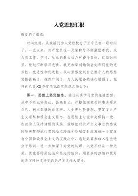 入党思想汇报敬爱的党组织:时间流逝,从我被列为入党积极分子至今已有一段时间了,一直以来,共产党员这一光荣称号不断激励着我,成为我工作、学习、生活的最大动力和奋斗目标。这段时间里,经过不断学习进步,我更加深刻地领会到我们党的进步性、先进性和代表性,从心里感觉到自己整个人的思想觉悟提高了,视野广阔了,为人民服务的决心增强了。现将自己第XX季度情况向党组织汇报如下:第一、思想上坚定信念。通过认真学习党的先进思想,从中不断充实自己、提高自己,严格按照党员标准去要求自己,树立正确的世界观、人生观和价值观,坚定了共产主义理想和社会主义信念,在思想上与党中央保持一致,在政治上保持清醒的头脑。能够把对共产主义事业的忠诚同坚决贯彻执行党的基本路线和各项方针政策统一于建设有中国特设社会主义的实践之中,通过认真参加入党先进分子培训,进一步加深了对党的认识。入党不仅是一种光荣,更重要的是应该有坚定的信仰,用更多的热情和更好的务实精神支持党的共产主义伟大事业。第二、工作上孜孜不倦。在工作上不断严格要求自己,注意搞好与同事、领导之间的关系,在同事、领导的支持和帮助下,逐步克服自己能力上的不足之处,不断积累学习经验。努力学习科学文化知识。同时作为单位一份子,不断的有帮助他人,熟悉个人专长,有针对性的帮带,与同事们一起努力,共同进步。在不断加强对文化科学知识学习的同时,还积极利用自己的业余时间,积极参加各种活动,提高自己各方面的能力,与此同时,认真阅读有关书籍,汲取知识,开拓眼界。尊重科学,勤奋学习,熟练掌握做好本职工作的所需的管理知识和科学文化业务知识充分发挥自己的才智,将自己的角色扮演到最好。第三、行动上持之以恒。有真抓实干,有全局意识。一切从实际出发,说实话,办实事,讲实效。从点滴开始关心同事,多和同事之间交流问题,尽自己所能为同事们服务,使同事们共同进步。在平时的生活中,注意从一点一滴的小事做起,不以善小而不为,不以恶小而为之。虽然,在最近的学习工作中有了长足的进步,但我还是有一些缺点,比如对党的一些理论研究的还不够深入等等路漫漫其修远兮,吾将上下而求索。入党过程庄严而艰辛作为一名入党积极分子,在以后的生活中,我不仅要刻苦学习党的理论知识,努力学习专业知识,提高自身素质,在同事中真正起到模范带头作用。严格要求自己的一言一行,争取早日加入我们的中国共产党并且成为其优秀的一员,用党的思想来武装自己,深刻理解里面的精髓,用于指导实际行动,为我国的社会主义事业添砖加瓦,全心全意为人民服务,不惜牺牲个人一切,为最高理想—实现共产主义而奋斗终生。以上是我近段时期的学习思想及生活状况,我会在今后的学习生活中不断努力,提高自己的综合素质,争取早日成为合格的员。入党思想汇报敬爱的党组织:不知不觉我已经第X次向您汇报思想了,回想这三个月的学习、工作和生活,依然觉得是忙碌而充实,自己也在党员同志的帮助下,一点一点修炼、一点一点成长,一点一点向组织靠拢。我始终通过学习强国、共产党员网等平台,关注时政,学习党的理论方针政策,针对目前百年未有之大变局,国内外环境的深刻变化既带来一系列新机遇,也带来一系列新挑战,是危机并存、危中有机、危可转机。作为国有企业的员工,就企业如何在复杂的环境中沉着应对、开创新局,我有一些自己的思考:一是坚持辩证思维看问题。辩证唯物主义是马克思主义哲学的基本原理,在当今这个复杂多变的外部环境中,我们尤其要坚持透过事物的表现分析其本质,正确认识机遇与挑战、发展与风险的关系,正确处理眼前利益与长远利益、个人利益与集体利益的关系,科学编制企业发展规划并带领全体员工团结一致朝着我们既定的目标前行。二是发挥组织优势促发展。今年突如其来来疫情让我们对共产党员四个字有了更加深刻的认识和理解,也更坚定了我加入中国共产党的决心,在任何有危险和困难的时候就有共产党员的身影,我们的企业也在逆风逆水的环境中开顶风船,我觉得这正是彰显组织优势,体现党员先锋模范作用的时候,我也愿意以一名真正党员的标准要求自己服从组织安排,冲锋在前,争当表率。三是敢闯敢试敢创新。走的是别人没有走过的路,做的是前人没有做过的事,难免荆棘丛生、困难重重。但创新是引领发展的第一动力。在当前这个形势下,企业如果想要在困境中有所突破,开辟新领域、探寻新路径显得尤为重要。以上是我这个季度的学习和思考,还有很多不成熟的地方,向组织汇报,提请批评和指正。此外,我本人在党组织的培养下,认真学习、努力工作,圆满完成了季度工作任务指标,获得了同事们的一致认可但我觉得我有还有一个明显需要提升的地方,那就是得到党员和同事帮助多,自己积极主动帮助同事少,自己在完成工作任务的同事,没有想到帮助新同事一起完成工作任务。在今后的工作中,我不仅要关注自己工作的完成,更要尽自己最大的努力,帮助同事共同提高,共同完成任务指标。入党思想汇报