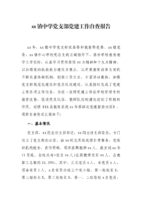 xx镇中学党支部党建工作自查报告xx年,xx镇中学党支部在县委和教育局党委、xx镇党委、xx镇中心学校党总支的正确指导下,结合学校教育教学工作实际,认真学习贯彻落实xx大精神和十九大精神,以加强党的执政能力建设为重点,以开展教育改革为契机不断完善体制机制,创新工作方法,丰富活动载体,加强党支部规范化建设和党员队伍建设,认真按时完成了党建工作各项工作任务,为进一发挥党建工作在学校管理中的教育优势,促进党员队伍、教师队伍的建设起到了积极的作用。对照《XX县教育系统xx年第四次党建督查内容》,现将自查情况汇报如下:一、基本情况党支部,xx同志任支部书记,xx同志任支部委员,专门设立了党支部办公室,由xx同志具体处理日常事务,党组织机构健全,责任明确。现有在职教师xx人。截至到xx年11月底,全校共有*党员xx人(在职教师党员xx人,占教职工总数的26.39%),其中,正式党员x人,女党员x人,预备党员1人。x名党员分成三个党小组,第一组组长X,第二组组长X,第三组组长X,第一、二组每组x名党员,第三组x名党员(1名预备党员),每组党员结构基本相似,都有老党员和青年党员、女党员。二、工作回顾1、机构成立按期严格按程序进行了支部换届工作。xx年3月21日召开党员大会进行换届选举,产生xx镇中学新的党支部委员会,xx同志任支部书记,xx同志、xx同志担任支部委员。通过支部会议,将所有党员分成三个党小组,民主选出三个党小组组长。2、xx镇中学党支部高度重视党建工作,设立了专门党建办公室和党员活动室。支部委员分工明确,书记负总责支部委员密切配合、分工协作,认真扎实地抓好学校党建工作,党支部书记与党员签订了目标管理责任书。支部委员精诚团结,共同致力于学校党建工作,在工作中主动将上级精神与本校实际情况有机结合起来,努力探索新形势下学校党建工作的新情况新问题。认真制订学校党建工作计划,做到了年初有计划、过程有检查、有落实、年终有总结,及时高效完成上级布置的各项工作。根据学校实际,召开支委员会议,专题研究党建工作,分别研究实施党建工作责任书、行风建设、师德教育、评选优秀党员讨论发展工作、讨论领导干部廉洁自律等内容。3、三会一课xx年5月修改和完善了三会一课制度和实施方案,根据上级党委的三会一课工作安排,截至11月底,我校党支部召开了X次党员大会,X次支部委员会议,X次党小组会议,9次党课和4次专题学习。4、发展党员制定了《xx年发展党员计划》,做好发展党员工作,是贯彻落实xx大精神的根本要求。要使党在建设有中国特色社会主义和未来的教育发展中保持生机和活力,就必须不断地把优秀知识分子充实到自己的队伍中来。学校党支部一方面让党员教师在青蓝工程中树形象,作表率,另一方面积极引导广大青年教师在先锋工程中积极向党组织靠拢。支部认真抓好党小组的学习,做到有计划、有步骤地安排好学习内容。并要求培养人根据培养对象的情况制订详细的培养计划和具体措施,定期向支部汇报培养对象的情况,全方位进行培养,促其尽快成熟。今年11月30日,我校陈文涛老师被党组织审查,成为预备党员。5、制度建设健全党支部各项制度,先后修改完善了《XXX县xx镇中学党支部党建工作制度》、《党费收缴制度》、《三会一课制度》、《党员活动日、党员学习制度》、《党员积分制管理细则》等15个制度。6、两学一做学习教育实践制定xx年两学一做工作计划,将两学一做活动常态化。按照集中学习、对照检查两个阶段进行本支部认真组织党员认真学习党章党规,学习总书记系列讲话精神,努力做一个合格党员,先后开展了四风两问题一薄弱方面的突出问题、四治四提两次问题整改活动,建立清单和台账,及时整改到位;每个党员签订了禁赌限牌承诺书。绝大多数本支部党员积极利用红星云平台认真学习党史、党章、党规以及党的十九大精神。支部党员出现你追我赶,争先恐后的学习局面。一年来,党支部在学校工作中发挥政治核心作用和监督保证作用。过好三会一课组织生活,按组织程序分别召开支委会、党小组会和党员大会,通过学习党中央和上级党委的重要文件,加强支委会和全体党员的党性修养和理论水平。党政领导班子思想统一,团结协作,确保卫学校各项工作的顺利开展。按照xx大精神要求对党员进行党的理想、信念、宗旨教育和党的纪委教育。通过主题党日活动,全体党员重温入党誓词,重听国际歌声,激发为党工作的热情。在学校工作中挑重担,起好带头作用。我校X名班主任,其中有X名班主任是党员,X名班主任是预备党员。7、根据上级党委的主题日活动安排,做到每个主题党日都有活动主题,学校党支部每月的第一周星期二按期开展主题党日活动,重温入党誓词,每个党员同志积极自觉足额缴纳党费。支部及时上报主题党日活动安排。8、准确采集了每个党员的基本信息