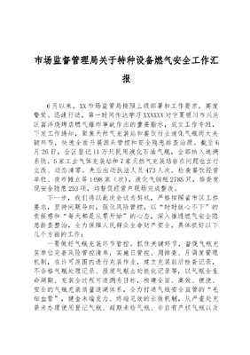 市场监督管理局关于特种设备燃气安全工作汇报6月以来,XX市场监管局按照上级部署和工作要求,高度警觉、迅速行动,第一时间传达学习XXXXXX对宁夏银川市兴庆区富洋烧烤店燃气爆炸事故作出的重要指示,成立工作专班,下发工作通知,聚焦天然气充装站和餐饮行业液化气瓶两大关键环节,快速全面开展源头管控和安全隐患排查治理。截至6月26日,全区登记11万只民用液化石油气瓶,全部纳入追溯系统。5家工业气体充装站和7家天然气充装站存在问题也立行立改、动态清零。先后出动执法人员473人次,检查餐饮经营单位、夜市摊点等1498家(次),液化气钢瓶2785只,排查发现安全隐患253项,均督促经营户现场完成整改。下一步,我们将以此次会议为契机,严格按照省市区工作要求,坚持问题导向,强化风险管控,以时时放心不下的责任感和每天都是从零开始的心态,深入推进燃气安全隐患排查整治,全力保障人民群众生命财产安全,具体抓好以下几个方面的工作:一要做好气瓶充装环节管控。抓住关键环节,督促气瓶充装单位完善风险管控清单,实施日管控、周排查、月调度管理机制,在许可范围内进行充装作业,建立充装前后检查记录,不合格气瓶处理记录、报废气瓶去功能化记录等,以气瓶全生命周期、充装全过程可追溯为目标,构建全面、高效、便捷、安全的气瓶充装质量追湖体系,全力打通气瓶安全监管的毛细血管,健金末端发力、终端见效的长效机制,从严查处充装未办理使用登记气瓶、超期未检气瓶、非自有产权气瓶以及报废气瓶等违法行为,加大清理未消除使用功能的报废气瓶和黑气瓶的力度,二要加强燃气用品质量监管。聚焦强制性标准和安全指标,对燃气用灶管阀和燃气泄漏报警器等重点产品加强监格抽查和巡查监管,严查家用燃气灶具无熄火保护装置、瓶装液化石油气调压器设有压力调节器、燃气胶管中间有接头等重点问题,切实发挥强制性认证保安全底线的作用,严肃查处无证产品生产、销售和使用等违法行为。三要守牢餐饮场所安全底线。充分汲取已发生事故特别是宁夏银川燃气爆炸事故的教训,全链条、全过程、全环节、无死角抓好餐饮场所经营过程中的燃气安全隐患排查整治,深入排查整治擅自将气瓶放置于室内用餐场所、使用不合格的气瓶、灶具,连接软管和减压阀,未按规定安装燃气报警装置等安全隐患,同时加强对经营者和从业人员的安全教育,切实提高安全防控能力和水平。对于检查发现的问题,督促经营户立查立改、闭环整改,坚决防止燃气瓶带病运行。四要充分发挥部门联动效应。加强同应急管理、住建、商务、交通运输、消防等有关部门的沟通联络,紧密配合,形成工作合力,共同抓好燃气安全隐患排查整治,采取明查暗访、四不两直和夜间突击检查、错时巡查和不间断、不定期督导检查等方式,对燃气行业安全隐患开展全面排查整治。进一步督促燃气运营企业查清燃气压力管道数量及基本信息,加强与住建等部门沟通协调,推动建立督促燃气压力管道使用单位落实企业主体责任,履行法定检验义务,及时发现和消除安全隐患。五要加强安全培训社会宣传。通过现场问答、警示教育和安全演示等,大力宣传法律法规、安全知识和应急措施,加强餐饮经营单位主要负责人和从业人员培训教育,提高安全意识,始终做到知责于心、担责于身、履责于行。指导餐饮场所做好燃气安全隐患自查自纠,提高发现和处理安全隐患的能力,对出现的险情能及时妥善处理,构建安全生产的人民防线。加大燃气安全社会宣传力度,普及安全生产、应急处置等基本安全知识,形成人人讲安全的良好社会氛围。
