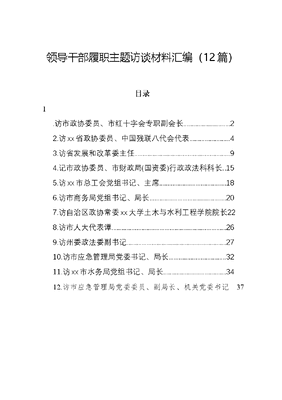 领导干部履职主题访谈材料汇编(12篇)目录1.访市政协委员、市红十字会专职副会长.22.访xx省政协委员、中国残联八代会代表43.访省发展和改革委主任94.记市政协委员、市财政局(国资委)行政政法科科长..155.访xx市总工会党组书记、主席.186.访市商务局党组书记、局长.207.访自治区政协常委xx大学土木与水利工程学院院长228.访市人大代表谭269.访州委政法委副书记2710.访市应急管理局党委书记、局长.3211.访xx市水务局党组书记、局长..3412.访市应急管理局党委委员、副局长、机关党委书记37访市政协委员、市红十字会专职副会长今年xx月,xxx提出在市城区设立两个纯公益性智能化救护培训基地的建议。经过前期调研,xx市中医医院临街的三个门面被确定为第一个基地地址,目前相关设备已经采购到位,即将进入施工阶段,预计明年x月底就能投入使用。这些年,在xxx的推动下,我市从医疗机构、学校、救援协会等单位选派具有救护经验、热心公益事业、善于教学讲课的人员,参加省红十字会系统培训。经过x年努力,我市已有xxx多人获得救护师职业资格证书,并通过他们培训红十字救护员x万名。x委员一直不遗余力地培养救护师,两三年时间,我们协会的救护师便从零发展到如今的xx人。xx市红十字水上救援志愿者协会会长xxx对xxx这些年的作为颇为夸赞。救护师熟练掌握应急救护能力,有救命的本领,还能够一传十、十传百,让更多人接触到更加专业、有效的救护培训,这样很多人都可以在危机时刻做到科学、及时的院外救护。xxx介绍,建强救护师队伍是提升全民急救能力的重要一环,目前我市每年已可稳定完成x万名救护员培训。履职过程中,xxx坚持把日常工作作为履职的切入点,为民呼、为民言。20xx年,她撰写提案《关于在全市初中学生中推广普及急救知识的建议》,得到市教育局的重视和快速办理。20xx年,她撰写提案《关于将〈红十字救护员证书〉作为驾照申领条件之一的建议》,虽然由于权限归属问题,这一建议无法在我市得到完全落实,但也促进了道路救援机制进一步加强,更加便捷的绿色通道得以建成。此外,担任政协委员以来,xxx还特别关注人道救助工作,近x年通过协商争取,为全市xxx多户经济困难家庭申请人道救助金xxx万,协调社会捐赠款物xxxx余万元。今年她又撰写提案《关于建设爱心基金的建议》,希望通过自己的呼吁,进一步增强xx市人道救助力量,帮助更多困难家庭。履职就要尽责,尽责就要有作为。我将结合工作,围绕群众所思所盼,深入调查研究,勤于发现问题、善于建言献策、敢于监督落实,不负政协委员的使命、不负人民群众的重托。访xx省政协委员、中国残联八代会代表作为一名听力残疾人,xx省政协委员、中国聋人协会副主席xxx在xx省两会上提交的提案,都与保障残疾人权益、改善残疾人处境有关。在各种场合,他竭尽所能为残疾人鼓与呼。他说:我深知残疾人朋友成长路上的无助和迷茫,做些力所能及的事,也许就能改变很多人的一生。为残疾人服务,我会一直做下去。走在路上,心里才踏实随着气温降低,xxxx秋意渐浓,处处秋叶斑斓。xx月xx日清晨,记者联系到xx省政协委员、中国残联x代会代表xxx时,他正在从xx赶赴xx大学参加第xx届中国残疾人事业发展论坛的途中。作为中国残联主席团委员、中国聋人协会副主席,xxx几乎把全部精力和热情用来推动残疾人各项工作,在路上,也成了他的常态。走在路上,为残疾人朋友鼓与呼,把对他们的帮扶落在实处,心里才踏实。xxx说。提起不久前的中国残联八代会,xxx告诉记者:为了更好地向听力残疾人朋友宣讲好八代会精神,从北京返回后,我马上和另一位代表一起,分别制作了图文并茂、通俗易懂的PPT课件,xx省聋人协会也第一时间通过多种方式及时向xx省各级聋协进行了传达学习。此外,xx省残联和各地市残联陆续组织了多场