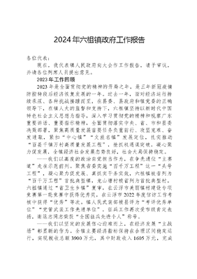 2024年六祖镇政府工作报告各位代表:现在,我代表镇人民政府向大会作工作报告,请予审议,并请各位列席人员提出意见。2023年工作回顾2023年是全面贯彻党的精神的开局之年,是三年新冠疫情防控转段后经济恢复发展的一年。过去一年,面对经济运行持续承压、各种挑战接踵而至,在县委、县政府和镇党委的正确领导下,在镇人大的监督和支持下,六祖镇坚持以新时代中国特色社会主义思想为指导,深入学习贯彻党的精神和视察广东重要讲话、重要指示精神,全面贯彻落实中央、省、市和县委决策部署,聚焦高质量发展首要任务负重前行、攻坚克难、奋发进取,紧扣中心镇文旅名镇发展定位,扎实推动百县千镇万村高质量发展工程,抢抓机遇谋突破,凝心聚力促发展,全镇经济社会发展态势良好,社会大局保持稳定。——我们以高度的政治自觉担当作为,在争先进位主赛道走在示范前列。聚焦省委实施百千万工程这一头号工程,凝心聚力促发展、真抓实干务实效,六祖镇被省列为百千万工程首批典型镇,龙山塘村被省列为首批典型村。六祖镇通过省卫生乡镇复审,在云浮市美丽镇村建设专项竞赛第一轮竞赛中获得优秀奖,在云浮市2022年度信访工作考核中获得优秀等次。镇人民武装部被县评为考评优秀单位党管武装工作先进单位,征兵工作再次受市级肯定表扬,谢远志同志荣获全国征兵先进个人称号。——我们以坚定的发展信心迎难而上,在经济发展主战场彰显新的作为。全镇主要经济指标保持在合理区间稳定运行,实现税收总额3900万元,其中财政收入1605万元,完成收入基数126.75%。规模以上工业总产值13306.5万元;限额以上批发业营业额6199.7万元;限额以上住宿餐饮业营业额3686.4万元,同比增长21.43%;500万以上项目固定资产投资项目完成投资15118万元。——我们以深厚的民生情怀提质增效,在民生福祉主阵地绘就幸福底色。高标准推动五件民生实事落实落地,高质量完成龙山健身步道、市县共建垦造水田项目等,积极推动圩镇综合面貌升级改造和秩序整治,加强农房风貌管控,有力改善镇村基础设施建设和民生条件,持续增强广大群众获得感、幸福感、安全感。我们重点抓好了以下工作:一是坚持抓项目优环境,高质量发展动能持续增强。项目引建大突破。深入贯彻落实县项目引建年行动,积极外出顺德区陈村镇、福建省福州市招商,引进新兴县禅正文旅度假区、龙泉阁康旅度假村、中和红梅民宿、同顺酒店、侨发山庄5个文旅康养类项目,计划总投资54亿元。盘活原绮景湖项目,推动禾泰农场股权重组、中和红梅民宿项目落地。完成市县共建垦造水田项目1285.62亩。土地收储大提速。全年完成县储备用地(三坪村九组)、云浮220千伏良洞(新兴)输变电工程、龙山塘上流村康养项目土地征收147.62亩,解决输变电工程线塔永久性租地98个,广湛高铁项目(六祖镇段)顺利收尾。营商环境大优化。乡镇体制改革持续深化,积极承接下放的县级行政执法权901项及行政管理权限11项。规范村级招投标程序,完成10宗村级招投标。二是坚持兴产业促发展,高质量发展活力持续激发。农业经济品牌化发展。龙头企业彰显示范作用,龙圣茶业入选首届粤港澳大湾区(广东)高价值商标品牌培育大赛百强名单;新兴县广华食品有限公司、广东香和源食品有限公司入选2022年广东省重点农业龙头企业。集体经济合作化发展。实现全镇31个行政村集体经营性收入达到15万元以上,其中20万元以上的有7个。按时按质完成49个自然村家庭农场专业合作社组建工作,完成率100%,并正式运营。家庭农场建设加快推进,深桥古板坑政银企村(户)共建家庭农场正在进行主体基础建设。全域旅游特色化发展。高质量协助办好了52030公里万人公益徒步、2023年云浮市新兴香荔产业发展大会、六祖文化节、红管家叶季壮同志优良作风交流会、马拉松竞赛等特色活动,龙山塘村被省农业农村厅评为省级休闲农业与乡村旅游示范点。民宿经济精品化发展。镇内在营业的民宿现有14间,培育了盧溪竹苑、蝶趣谷(自然墅民宿分享农场)、木易山居等一批独具特色的精品民宿,六祖镇十大精品民宿初具雏形。积极配合六祖故里旅游度假区做好创建国家5A旅游景区工作,新兴龙山文创街区正式开街。旅游产业基本恢复,禅意游红色游农旅游出圈,全年接待游客203.16万人次,同比增长318%,旅游总收入11.16亿元,同比增长2046%。三是坚持强基础促提升,高质量发展空间持续拓展。国土空间规划不断优化。初步完成《六祖镇国土空间总体规划(2021-2035年》,镇级国土空间规划编制工作形成初步成果,六祖镇入选全省镇村国土空间集成规划试点名单,三坪村村庄规划优化提升编制有序推进。城镇面貌更新步伐加快。人文六祖•多彩里洞乡村振兴示范带基本建成,并成功入选