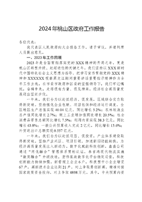 2024年桃山区政府工作报告各位代表:我代表区人民政府向大会报告工作,请予审议,并请列席人员提出意见。一、2023年工作回顾2023年是全面贯彻落实党的XXX精神的开局之年,更是桃山区转型升级、赶超进位的关键之年。我们坚持以XXX新时代中国特色社会主义思想为指导,把学习宣传贯彻党的XXX精神和XXXXXX视察黑龙江期间重要讲话重要指示精神作为全年工作主线,在市委市政府和区委的坚强领导下,我们牢记嘱托,奋楫争先,走得很有力量、很见神采,经济社会高质量发展迈出坚实步伐。一年来,我们全力以赴抓经济、促发展,区域综合实力取得新突破。坚持强化企业包联、项目包保和经济运行调度,全区地区生产总值实现40.04亿元,同比增长5.2%;农林牧渔业总产值同比增长2.7%;规上工业增加值同比增长20.5%;社会消费品零售总额同比增长7.5%;利用内资实现38.3亿元,同比增长63.8%;一般公共预算收入完成2亿元,同比增长13.6%;外贸进出口总额实现0.557亿元。一年来,我们全力以赴抓项目、促投资,产业体系建设取得新突破。坚持产业兴区、项目引领,加速新旧动能转换,为经济高质量发展注入新动力。数字化赋能科技创新。鑫盛公司通过两化融合管理体系贯标认证,泰吉鸿现代物流实施数实融合升级改造,宏伟家政数字化平台稳定运营,科技创新能力持续加强。新晋规上企业6户,科技型中小企业增至67户,高新技术企业达到21户。对上争取勇创新高。精准对接国家政策资金投向,对上争取4898万元。其中,中央预算内资金2718万元主要用于建设桃东、桃北街道居家养老服务中心、改建南岸幼儿园托育中心、改造燃气老旧管网、建设万宝河镇冬季蔬菜小区5个项目,2000万元冰雪经济专项债主要用于冰雪经济产业园提档升级,180万元福彩公益金主要用于居家养老服务中心货品采购。重点项目加速推进。牢固树立项目为王的鲜明导向,确定省、市级重点项目8个,年度投资1.72亿元,完成投资2.03亿元,投资完成率118%。其中,泰吉鸿现代物流一期、博达全民健身中心、红岩村养殖产业基地、油氢电新能源示范一期项目等均已竣工。招商引资再创佳绩。坚持全季全域全员招商,实施领导干部带头招商、以商招商、产业链招商,形成大招商、招好商的良好局面,全年签订产业项目19个,到位资金38.3亿元。制造再制造产业活力增强。百凝盾公司冰刀护具制作、浇冰装备等产业链不断升级,对俄出售冰刀冰鞋产品,实现对俄贸易零突破。再生园区企业已发展到14户、15个项目,实现产值11.5亿元,新上润鑫30万吨废旧钢铁分拣加工、五角场重工精铸和百鑫废旧玻璃分拣加工项目,为实现53211超千亿产业集群贡献桃山力量。消费回补成效显著。积极响应全市促消费活动号召,倾力举办创意桃山·惊喜无限首届促消费活动,涉及汽车、家电、超市、住宿餐饮等企业25家,发放政府消费券60万元,拉动消费3000余万元,真正发挥助企惠民作用,市场活力进一步增强。一年来,我们全力以赴抓文旅、促融合,特色文化旅游取得新突破。紧紧围绕一个主题、两个目标、八大板块,立足五个领域特色文化,打造文化旅游新载体,旅游产业发展跑出加速度。精心建设万宝音乐创意部落。从无到有不足百日,推出音乐长廊、星空露营、云端小院等五个板块,成功举办为期2个月的七台河首届万宝音乐节,累计吸引游客10万余人次,线上线下浏览量超1000万次,创造了音乐节演出时间最长、节目最多、质量最高的历史纪录,实现音乐元素与创意设计充分融合。全新打造万宝奇异冰雪部落。承办第十届全文可居文库——海量学习资料,手机电脑均可下载www.wenkeju.com国大众冰雪季暨第六届七台河冠军传奇冰雪嘉年华活动,举办冰上龙舟超级联赛、全民冰上速滑马拉松等冰雪运动,成功接待江门小醒狮开展研学活动,创新推出冠军雪堡、冠军家族、冠军圣火,充分展示冠军军、桃山山、万宝宝等系列文创产品,推出手碟杀猪菜、空灵鼓笨锅炖、年夜饭等,丰富游客冬季旅游体验。深度挖掘冰雪文化发展潜力。发挥百凝盾运动装备品牌效应,积极促进专利研发,目前已申请新型专利、外观设计专利、发明专利等43个。成功举办首届百凝盾杯全国青少年短道速滑邀请赛,有力推动了短道速滑运动的深度普及和蓬勃发展。百凝盾公司向桃山区少儿业余体校捐赠价值15万元的速滑装备,为推动我市短道速滑事业发展做出贡献。一年来,我们全力以赴抓环境、促提升,城区环境品质取得新突破。聚焦城市更新,坚持建管并重,推动城市功能、城市形象、城市生态和谐统一。全力营造干净整洁城区环境。积极组织桃山是我家·美丽靠大家百日会战活动,打造6个城区建设亮点、解决7个群众反映强烈问题、疏通8个城区管理堵点、攻克9个环境整治难点,共拆除各类违法建筑22处,清理各类垃圾7000余立方米,小广