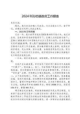 2024年孙坊镇政府工作报告各位代表:现在,我代表孙坊镇人民政府,向大会报告工作,请予审议,并请各位列席人员提出意见。一、2023年工作回顾过去一年,是全面贯彻党的XXX精神的开局之年,我们在县委、县政府和党委的坚强领导下,在镇人大的监督支持下,坚持以XXX新时代中国特色社会主义思想为指导,认真贯彻落实党的XXX精神,深入践行XXXXXX考察江西时的讲话精神,坚持稳中求进工作总基调,紧扣高质量发展主旋律,统筹抓好经济建设、民生保障、安全发展、自身建设等各项工作,努力完成上级下达的各项任务目标,经济建设和社会事业保持稳中有升的良好发展态势。一年来,我们攻坚克难、破除梗阻,促进经济发展呈现新貌。农牧产业全面发展。牢牢扭住下港村西门塔尔肉牛养殖的牛鼻子,吸纳庙上、南门、邹家等散户聚集村打造规模养殖效益;充分挖掘每年冬闲田万亩油菜种植优势,打造本土菜籽油品牌。坚持精品乡镇发展战略,以月塘街集镇为核心,主干道沿线南门、邓家、徐埠、安仁等为基点,完善基础设施、优化环境质量,因地制宜的发展紫薯种植、油茶种植和深加工、富硒米种植和精加工等项目,全力提升镇村品质。截至目前,我镇油菜种植11000多亩,晚稻19000多亩,西蓝花100多亩、紫薯380多亩。项目建设扎实推进。积极推进镇辖区内民生项目建设,完善崇仁县红桥里至里坊(白路至孙坊段)县道升级改造项目,做好罗家村上罗组至孙坊粮站延伸段的路面硬化、安仁村鱼尾组至孙坊河堤垱衔接处的路面硬化。进一步做好水沟盖板铺设、划交通标识线等收尾阶段,集镇污水管网及污水处理池建设全面铺开建设,持续做好辖区内耕地保护宣传及补充耕地工作,现已进行了耕地补充翻耕200亩。加快推进孙坊镇新卫生院工程建设,极大改善村民就医看病环境。招商引资提质增效。全力参与县商务局举办的企业调度会和擂台赛,精准服务我镇今年成功引进的江西坤丰有限公司和江西鑫垚林业有限公司的发展所需,有状况有困难,及时靠上去,提供保姆式服务,并组织经常走访了解其生产状况和发展困难,为企业排忧解难,营造良好的营商环境。一年来,我们牢记使命、砥砺前行,推进乡村振兴稳步前行。巩固拓展脱贫攻坚成果同乡村振兴有效衔接。一是在坚持每月开展返贫监测排查的基础上,2023年5月份我镇按要求组织全镇帮扶干部开展返贫监测全面排查工作,对所有辖区农户小孩义务教育、住房、饮水情况进行排查,并建立台账备查。二是按照上级要求组织全体村两委干部、驻村工作队队员对县民政、医保部门反馈人员围绕两不愁三保障、饮水安全及收入刚性支出情况进行上户摸排,组织召开民主评议会议确定是否纳入监测范围,对符合纳入条件的农户经党政联席会议研究通过后履行公示公告程序。全年共新增监测对象3户10人。三是定期组织开展乡村振兴业务培训工作。截至目前已组织两批次村主要负责人、驻村第一书记参加镇乡村振兴站举行的镇村两级帮扶干部、乡村振兴组成员、驻村工作队队员业务培训会议,提高了业务能力。人居环境上新台阶。进一步打造干净、整洁、宜居的人居环境。继续深入开展农村人居环境卫生整治工作,结合新农村建设项目申报工作,申报了14个新农村建设点,持续做好农村环境整治及村庄整治,打造宜住宜居宜美的秀美乡村。深入实施蓝天保卫战,扎实推进秸秆禁烧,共计发放森林防火明白纸1800余份,签订秸秆禁燃承诺书1700余份,完成农村新建文可居文库——海量学习资料,手机电脑均可下载www.wenkeju.com改厕465户,同时完成下港村整村推进共计完成105户。充分发挥畜禽养殖粪污资源化利用整改工作,对全镇2家养猪场1家养牛场1家养羊场进行粪污资源化利用情况排查,明确各场粪污资源化利用整改工作责任人,限定日期对前期摸排发现的问题进行整改。同时,定期到以上各场及农户家中督查走访,防止新问题产生。建房管控严抓严守。进一步做好农村建房管控工作,杜绝占用耕地建房、违规建大棚房、挖鱼塘、占用耕地种果树情况,积极做好土地卫片整改工作,确保耕地不抛荒。截至目前共拆除农村危旧房及违搭物129处,17677平方米,清运拆旧拆违垃圾8660立方,集中整治集镇乱搭乱建73处。一年来,我们勤政务实、体察民情,增进民生福祉更有质感。安全生产从严从细。坚持每月开展3次安全生产督察,认真抓好食品药品、危险化学品、烟花爆竹、加油站、消防等行业领域的安全生产隐患排查治理,积极开展安全生产专项行动、家庭式商铺消防安全三清查三落实专项整治等,坚决消除各类隐患,下沉到一线,深入企业,全覆盖检查、对存在有安全隐患的重点督查,对存在的隐患清单式交办、闭环式整改,切实从根本上解决问题,力促安全生产治理模式向事前预防转变。截至目前,孙坊镇共开展安全生产检查46次,发现安全隐患8项,已全部完成整改。开展交通安全宣讲活动20次,开展防溺水宣讲活动55次,开展中小学食