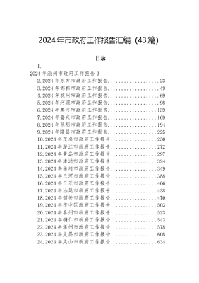 2024年市政府工作报告汇编(43篇)目录1.2024年沧州市政府工作报告32.2024年东方市政府工作报告.233.2024年邯郸市政府工作报告.494.2024年杭州市政府工作报告.695.2024年河源市政府工作报告.986.2024年黑河市政府工作报告1397.2024年嘉兴市政府工作报告1698.2024年昆明市政府工作报告1949.2024年隆昌市政府工作报告22510.2024年茂名市政府工作报告..25011.2024年潜江市政府工作报告..27212.2024年青岛市政府工作报告..29713.2024年清远市政府工作报告..32414.2024年曲靖市政府工作报告..34915.2024年三河市政府工作报告..38816.2024年三亚市政府工作报告..40617.2024年汕尾市政府工作报告..43818.2024年韶关市政府工作报告..47019.2024年市中区政府工作报告..50320.2024年泰州市政府工作报告..52321.2024年铜仁市政府工作报告..54322.2024年温州市政府工作报告..57823.2024年文昌市政府工作报告..60824.2024年文山市政府工作报告..63425.2024年乌兰察布市政府工作报告.65926.2024年宣城市政府工作报告..68427.2024年伊春市政府工作报告..71728.2024年岳阳市政府工作报告..73829.2024年漳州市政府工作报告..76430.2024年肇庆市政府工作报告..78931.2024年建瓯市政府工作报告..82332.2024年邵武市政府工作报告..84033.2024年武夷山市政府工作报告85834.2024年南平市政府工作报告..87635.2024年梅州市政府工作报告..89336.2024年崇左市政府工作报告..92037.2024年攀枝花市政府工作报告95138.2024年防城港市政府工作报告97639.2024年焦作市政府工作报告.100940.2024年高安市政府工作报告.103441.2024年舟山市政府工作报告.105342.2024年郴州市政府工作报告.107743.2024年苏州市政府工作报告.11042024年沧州市政府工作报告各位代表:现在,我代表沧州市人民政府向大会作工作报告,请予审议,并请政协委员和列席会议的同志提出意见。一、2023年工作回顾2023年极不寻常、极不平凡。5月11日,XXXXXX视察河北、来到沧州,从田间地头到深水大港,光辉足迹镌刻狮城大地,从粮食安全到能源安全,殷殷嘱托指引前进方向,为沧州发展提供了强大政治引领、创造了重大历史机遇,全市广大干部群众倍受鼓舞、倍感振奋、倍增干劲,汇聚起加快建设沿海经济强市的磅礴力量。一年来,面对严峻复杂的外部环境、艰巨繁重的改革发展任务和多年不遇的洪涝灾害,全市上下坚持以XXX新时代中国特色社会主义思想为指导,全面落实党中央、国务院决策部署和省委、省政府工作要求,在市委的坚强领导下,牢记嘱托、感恩奋进,解放思想、奋发进取,较好地完成了十五届人大四次会议确定的目标任务。(一)一年的拼搏奋斗,经济运行更加强劲。坚持把稳增长放在突出位置,顶住外部压力、克服内部