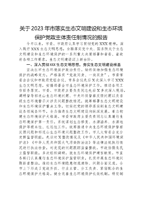 关于2023年市落实生态文明建设和生态环境保护党政主体责任制情况的报告.docx