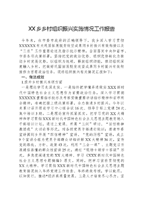 XX乡乡村组织振兴实施情况工作报告今年来,在市委市政府的正确领导下,我乡深入学习贯彻XXXXXX有关巩固拓展脱贫攻坚成果同乡村振兴有效衔接以及三农工作重要论述及指示批示精神,全面落实中央和省市、市委各项决策部署,坚持把党的政治优势、组织优势转化为推动乡村发展优势,以组织为统领,释放组织动能,推动组织深度融入乡村。把做好巩固拓展脱贫攻坚成果同乡村振兴有效衔接作为首要政治任务,现将组织振兴有关情况汇报如下:一、做法成效1.提升乡村振兴本领方面一是理论学习走深走实。一是始终把学懂弄通做实XXX新时代中国特色社会主义思想作为首要政治任务,深入学习贯彻XXXXXX重要指示批示及考察安徽重要讲话指示精神和省市两会精神,准确把握上级决策部署,全力推进乡村振兴。今年以来累计召开理论学习中心组会议16次、领导干部上党课24次、集中培训3期。二是理论宣传抓紧抓实。把学习党的XX大精神和学习贯彻XXX新时代中国特色社会主义思想主题教育纳入干部培训计划,通过上党课、开展三问研讨、回信精神激励我大讨论等形式,对各级党员干部进行轮训;邀请市委宣讲团到乡开展回信精神宣讲、党的历程宣讲,成立9个宣讲小组为党员干部群众详细讲解XX大精神36次,宣传党的路线、方针、政策43次,利用三会一课、主题党日开展通俗易懂的群众性宣讲25次,通过现场+领学+答疑形式,多角度阐述党的XX大精神、学习《XXX新时代中国特色社会主义思想专题摘编》原文。同时,把学习宣传贯彻党的XX大精神、学习贯彻XXX新时代中国特色社会主义思想主题教育情况纳入年终党建工作检查、年终绩效考核,学以致用,以知促行,推动*经济高质量发展。三是人才培育尽心尽力。坚持招才引智和培育本土人才有机结合,持续强化内部造血功能,积极引导各类人才投身乡村振兴。以本土乡村工匠、种养殖能手、乡贤能人、村医、个体经营者、农村电商等土专家、田秀才为主要对象,重点培养带领技艺传承、带强产业发展、带动群众致富、带头倡导文明的乡土人才;以乡村需求、项目需求为主线,订单式培养一批土专家田秀才乡创客等实用人才,不断壮大农村专业人才队伍。开设政治理论、乡村振兴、农业农村等系列课程20场,参与党员1000人次。开展在外高层次人才信息征集工作,建立在外人才数据库1010人,发挥发动驻外流动党组织和商会作用,搜集回乡创业在外能人线索,跟进对接加大政策支持,推行菜单式引才,持续激发人才创新创业活力。2.乡村振兴体系贯通方面一是严格制度。严格落实三会一课、主题党日、政治生日等制度,定期开展制度落实专项督查,助推支部工作规范化。组织召开党史学习教育专题民主生活会和组织生活会。今年来,乡开展党建工作调度会4次,党组织书记抓党建述职评议2次。构建月调度、季督查、半年述职、年考评全周期闭环链条,提升党建工作标准化规范化水平。二是建强队伍。制定发展党员指导计划,召开积极分子、发展对象培训班,加强党员发展动态管理,已发展9名党员。发放在党50年纪念章6人,慰问老党员、困难党员72人次。储备村级后备干部23名,高层次人才信息采集2000余人。加强干部队伍建设,不断完善干部梯队,选拔任用村后备干部27名,选优配强村级班子,调整3名村两委成员。组织开展选派干部六项行动、村党组织书记擂台比武,龙湾村第一书记获安庆市擂台比武第一名,暗冲、白寨工作队队员获市擂台比武一等奖、优秀奖。派驻党建指导员到企业党建服务60余次。三是助推集体经济发展。坚持党建引领村集体经济发展提质增效,6个村集体经济收入超50万元,村均达62.13万元,实现年初既定目标。建设双基类、产业类项目13个。多举措化解村级债务,8个村债务清零。完成10个书记项目和11个书记领办事项,以书记领题突破发展难题。督促完成湖田粮食安全抽样点建设,合理分配2023年粮食生产任务;扎实开展油菜菌病防治示范活动,打造化肥减肥增效百亩示范片2个、茶园绿色防控试验示范点12个;新增示范专业合作社和家庭农场市级1家、县级2家,新发展三品一标农产品1个。培育壮大*笋干、万涧菊花、暗冲猕猴桃、白寨白茶等村级产业。暗冲村改进金银花种植品种和管理模式,产量比2022年翻了一倍;白寨村整合书记项目资金和帮扶资金80万元,新建茶园300亩;龙湾村三产融合产业园已完成水源地提升、笋干展厅等子项目建设,做大消费扶贫。激励党员干部在经济建设主战场、项目建设最前沿当先锋、打头阵、作表率,推动工作落地落实。服务保障340省道杜埠街至大港河段改建项目、*河景区建设项目高质高效实施。预制菜生产加工项目主体建筑封顶,年内试生产;湖田凤栖园农旅项目一期基本完成;暗冲村鳗鱼养殖项目2月投苗;旧你最好民宿项目力争2024年五一投入运营。四是狠抓软弱涣散党组织整