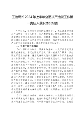 工信局长2024年上半年全面从严治党工作第一责任人履职情况报告.docx