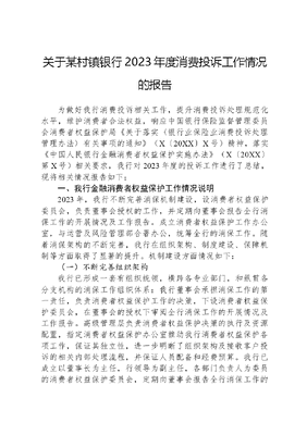 关于某村镇银行2023年度消费投诉工作情况的报告.docx