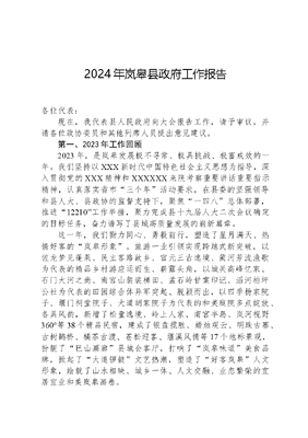 2024年岚皋县政府工作报告各位代表:现在,我代表县人民政府向大会报告工作,请予审议,并请各位政协委员和其他列席人员提出意见建议。第一、2023年工作回顾2023年,是岚皋发展极不寻常、极具挑战、极富成效的一年。我们坚持以XXX新时代中国特色社会主义思想为指导,深入贯彻党的XXX精神和XXXXXX来陕考察重要讲话重要指示精神,认真落实省市三个年活动要求,在县委的坚强领导和县人大、县政协的监督支持下,聚焦一四八总体部署,推进12210工作举措,聚力完成县十九届人大二次会议确定的目标任务,奋力谱写了县域高质量发展的崭新篇章。这一年,我们勠力同心、勇毅前行,塑造了星月满天、热情好客的岚皋形象。旅游一业引领实现跨越式新突破,以佐龙梦见蓬莱、民主客路故乡、官元三古逸境、蔺河芳流渔歌为代表的精品乡村游应运而生、崭露头角,以城关高峰忆家、石门大河之尚、南宫山袈裟梯田、孟石岭甘棠印记、滔河柏坪公社为代表的田园综合体异军突起、脱颖而出,以四季杨家院子、堰门祠堂院子、大道胡家院子为代表的和美庭院多点绽放、各具风韵,新增了松童逸境、岭上人家、南宫半岛、岚河视野360°等38个精品民宿,建成了银盘揽胜、蜡烛观云、明珠古寨、古树鹊桥、橘茶古渡、苍松迎客、堰溪风情等17个地标景观,扮靓了巴山画廊县城会客厅,打响了岚皋味道美食品牌,掀起了大道锣鼓文艺热潮,塑造了好客岚皋人文形象,绘就了山水相映、城乡一体、人文交融、业态繁荣的宜居宜业和美岚皋画卷。这一年,我们牢记嘱托、只争朝夕,展现了勇立潮头、敢为人先的岚皋自信。时刻牢记XXXXXX来陕考察殷殷嘱托,担当作为、奋勇争先,探索的城乡居民医疗互助做法被国家《乡村振兴简报》刊发,村医订单定向培育模式得到国家卫健委推广,构建企业全生命周期集成服务体系经验得到常务副省长王晓、副省长王海鹏批示肯定,改善农村人居环境,促进乡村产业振兴被省政府大督查通报表扬,开拓创新破解居民办证难题入选全省不动产登记改革优秀案例,升级店小二当好保育员、现代宜居农房四改一建、营商环境三前五办四保障、街面智慧警务合成作战1+3+N、食品监管五个坚持、妇女儿童四联维权、三长治路、集体经济345等16项创新做法得到中省市肯定,全省现代宜居农房建设、全省中小学心理健康教育等9个省市级现场会在岚召开,荣获全国魔芋产业重点县、中国天然氧吧、全省万企兴万村行动典型县、全省智慧教育示范区、全省农村客货邮融合发展样板县、省级慢性病综合防控示范区、省级食品安全示范县、全省平安县、全省治理重复信访和化解信访积案先进集体等10余项中省荣誉称号。这一年,我们坚守初心、以干克难,彰显了知重负重、共克时艰的岚皋担当。面对宏观经济下行、发展预期偏弱、土地要素制约、统计专项治理等诸多风险和挑战,全县上下顶住压力、迎难而上,全力以赴守底线、跳摘桃、创特色、树形象,各项主要经济指标增速始终保持在全市第一方阵。特别是长期困扰南宫山景区开发的体制瓶颈艰难破局,景区经营权转归岚皋;水围城龙城御景历史遗留问题圆满破解、华丽转身,打造成为全县宜居宜业、高端置业的新地标;以双高为重点的重大项目环境保障有力有效,巴山六大草原森林防火通道项目启动前期,遇子坪隧道、汉江大桥项目完成前期,积蓄了关乎岚皋未来的强劲动能;各级领导干部经受住了迎接巩固衔接国家综合评估、省第三方评估等多重考验,扛牢了文可居文库——海量学习资料,手机电脑均可下载www.wenkeju.com违规坟墓排查整治、耕地流出问题整改等前所未有的政治任务,打通了黑湾电站、肖家坝湖滨东路等一批多年想解决而未解决的肠梗阻,破解了长达19年的木器厂信访问题,干部作风能力持续提升,政风民风得到实践检验,锻造了一支敢打硬仗、能打胜仗、素质过硬的干部队伍,书写了铁肩扛重担、越是艰险越向前的时代作为与担当。各位代表!唯有担当能任事,成如容易却艰辛。一年来,我们敢想、敢闯、敢干、敢为人先,以非常之举应对非常之势,用非常之策破解非常之难,主要做了八个方面工作:(一)突出大抓项目、抓大项目、狠抓产业项目,县域经济承压前行。全年实施县级重点项目121个,明富魔芋技改扩能、富硒农产品深加工等67个项目竣工投用,安岚高速、阀门汽配等29个市级项目超额完成投资任务,康渝高铁岚皋段全线动工,中省专项资金同比增长5%,重点项目三单三书三督做法在全省《高质量项目推进年工作简报》刊发。全年实现地区生产总值同比增长4.6%,一般公共预算收入增长3.2%,规上工业增加值同比增长13.8%,固定资产投资同比增长1%,全社会消费品零售总额同比增长4%,城乡居民人均可支配收入分别同比增长5.4%、7.6%,主要经济指标增速总体位居全市第一方阵。(二)狠抓一