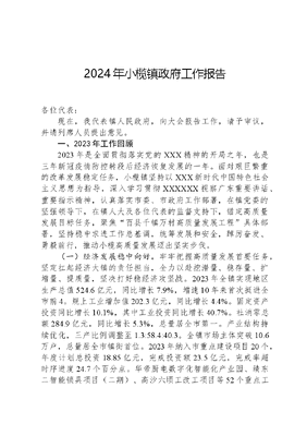 2024年小榄镇政府工作报告各位代表:现在,我代表镇人民政府,向大会报告工作,请予审议,并请列席人员提出意见。一、2023年工作回顾2023年是全面贯彻落实党的XXX精神的开局之年,也是三年新冠疫情防控转段后经济恢复发展的一年。面对艰巨繁重的改革发展稳定任务,小榄镇坚持以XXX新时代中国特色社会主义思想为指导,深入学习贯彻XXXXXX视察广东重要讲话、重要指示精神,认真落实市委、市政府工作部署,在镇党委的坚强领导下,在镇人大及各位代表的监督支持下,锚定高质量发展目标任务,聚焦百县千镇万村高质量发展工程具体部署,坚持稳中求进工作总基调,统筹发展和安全,踔厉奋发、勇毅前行,推动小榄高质量发展迈出坚实步伐。(一)经济发展稳中向好。牢牢把握高质量发展首要任务,坚定扛起经济大镇的责任担当,全力以赴挖潜量、稳存量、扩增量、提质量,坚决打好稳经济攻坚战。2023年全镇实现地区生产总值524.6亿元,同比增长7.9%,增速10年来首次挺进全市前4。规上工业增加值202.3亿元,同比增长4.4%。固定资产投资同比增长10.1%,其中工业投资同比增长40.7%。社消零总额284.9亿元,同比增长5.3%,总量居全市第一。产业结构持续优化,三产比例调整至1.3:58.4:40.3。全镇市场主体突破10.6万户,总量居全市镇街首位。2023年纳入市重点建设项目20个,年度计划总投资18.85亿元,完成投资额23.5亿元,完成率超时序进度24.7个百分点。华帝厨电数字化智能化产业园、绩东二智能锁具项目(二期)、高沙六顷工改工项目等52个重点工业项目全面动工,坚朗五金项目实现拿地即动工;三和建材、迪欧家具一期、正高智慧城等45个项目顺利投产。小榄在2023年全国镇域经济500强中位列第17位,成为全市唯一进入前100名的镇街,成功获评全省唯一的中国最美村镇产业兴旺成就奖。(二)新旧动能加速转换。产业发展空间进一步释放,全年拆除整理低效工业用地超3000亩,完成量居全市前列,建成腾挪园超100万平方米,获评中山工改标兵单位、突出贡献奖;积极推进批而未供和闲置土地超800亩。搭建产业发展平台,推动省级高新区创建验收准备工作基本就绪、中山智能家居产业园(小榄片区)建设工作提质增效。高规格举办全镇高质量发展招商大会,签约项目23个,投资总额98.3亿元。成功推动建华供应链、华帝厨电、坚朗五金和绿金湾四大10亿+投资项目落户,创小榄历年之最。加大数字化智能化改造力度,出台小榄技改和数字化转型十二条,全年完成技改项目备案110个,计划投资19.23亿元,完成技改投资23.1亿元,同比增长30.4%。建立优质转型服务商资源库,推动61家企业申报省级专精特新企业,其中宝路盛等51家企业进入公示名单。11家企业申报专精特新小巨人,汉仁电子、快车科技成功认定为国家专精特新小巨人企业。加快企业上市步伐,推动10家企业进入实质性改制。强化金融对实体经济的支撑,获批银行融资授信额度超600亿元;在全市首创由镇属企业牵头、乡贤及多家资产投资公司合作的中山市致盛创投基金,首期资金规模达5000万元。聚力产品质量提升,建成全市首家工业产品医院,设立中山市五金和家具知识产权快速维权服务中心。小榄智能锁具产业集群成功申报为省级中小企业特色产业集群。推进人才强镇战略,广东中山人力资源服务产业园小榄园成功认定为省级人力资源产业园,中山国际人才港小榄服务中心完成升级改造并入选中山市竞争性人才优秀项目。(三)城乡发展更加协调。百千万工程稳健开局,小文可居文库——海量学习资料,手机电脑均可下载www.wenkeju.com榄镇成功入选省百千万工程首批典型镇,永宁社区入选省百千万工程首批典型村(社区),小榄典型镇建设规划成为全市唯一的省级优秀案例。在全市率先开展镇内结对帮扶,6个经济薄弱村2023年村级集体收入同比增长12.4%,入选中山市首届乡村振兴创新典型中唯一的组织振兴案例。创新乡村文化振兴新路径,组织首批8名文化村长驻点指导村(社区)开展文化兴村活动。加快完善交通路网体系,同利路(东升段)、西环高速出口连接线道路工程建成通车,小榄工业大道、永宁工业大道、同乐路等道路改造升级项目有序推进。现代物流业发展提速,小榄—盐田航线成为全市第8条深中组合港航线,深圳机场首个异地前置仓落地小榄,小榄货物实现直达深圳机场。完善城市功能配套,建成智慧停车泊位近1000个。坚决守牢耕地保护红线,完成市下达我镇粮食种植目标任务,完成耕地非粮化图斑整改复耕复种2750亩、草皮专项整治超2000亩。铁腕推动两违专项整治,拆除乱搭乱建、违章建筑超21万平方米,超额完成市下派任务。着力提升各大商圈服务能级,大力发展夜经济,汇丰城获评全市