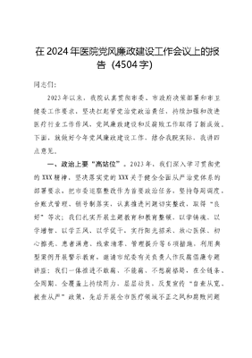 在2024年医院党风廉政建设工作会议上的报告.docx