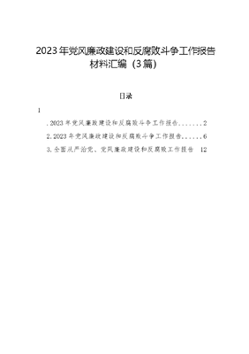 2023年党风廉政建设和反腐败斗争工作报告材料汇编(3篇)目录1.2023年党风廉政建设和反腐败斗争工作报告.22.2023年党风廉政建设和反腐败斗争工作报告63.全面从严治党、党风廉政建设和反腐败工作报告122023年党风廉政建设和反腐败斗争工作报告发现问题、形成震慑,推动改革、促进发展。过去一年,市县两级巡察机构全面贯彻中央巡视工作方针,精准落实政治巡察要求,以高质量发展为主线,以省委巡视xx同步对市委巡察工作开展专项检查为契机,以打造清廉xx·巡察护航监督品牌为载体,守正创新,勇担使命,持续推进政治巡察向深拓展、向专发力、向下延伸,为促进全市经济社会高质量发展提供了坚强保障。坚持守正创新深化政治巡察xxxx年是全面贯彻落实党的XXX精神的开局之年,做好巡察工作意义重大、使命光荣。xxxx年年初,随着五届市委第三轮巡察动员部署会召开,xxxx年度市委巡察工作吹响冲锋号。利剑高悬、震慑常在。过去一年,全市巡察机构坚守政治巡察定位,重点围绕学习贯彻党的XXX精神,十四五规划和省委、市委全会精神,采取板块轮动方式,紧盯民生领域、教育系统,精心组织开展了两轮市委巡察。对市财政局、市交通运输局、市教育局等xx个市级部门(单位)开展常规巡察,对部分县(区)纪委监委机关、党委组织部和政法委开展提级文可居文库——海量学习资料,手机电脑下载www.wenkeju.com巡察,完成五届市委巡察全覆盖任务的xx.x%,共发现问题xxx个,移交问题线索xx件。在实践中深化,在深化中发展。随着巡察工作的深入推进巡察模式也在不断创新:首次在常设x个市委巡察组的基础上,增设x个市委巡察组,首次采用组内分组一托二的方式,首次同时运用常规+同步联动+提级联动形式开展巡察,首次对市级部门(单位)一把手的情况梳理形成专题材料,务实推动政治监督具体化、精准化、常态化。党委高度重视,是巡察工作有权威、有成效的重要保障。一年来,市委把巡察工作放在中心大局来谋划,纳入市委常委会年度工作要点安排。市委常委会会议及时听取巡察工作情况汇报,审议修订《中共xx市第五届委员会巡察工作规划(xxxx—xxxx年)》,形成高质量全覆盖任务书,高位推进巡察工作提质增效。注意系统思维贯通融合见效xxxx年x月中旬,xx县委第二巡察组在xx社区五组回访时,村民们你一言我一语向巡察干部分享着糟心路变舒心路的喜悦。xxxx年xx月初,xx区委第二巡察组对xx村污水处理站运文可居文库——海量学习资料,手机电脑下载www.wenkeju.com行情况进行回访,对比前期进驻巡察时的场景,一度沉睡的污水处理设备已正常运行。……贴近民生巡,顺应民心改。过去一年,我市巡察紧盯民生关切,用好立行立改机制,短平快推动解决群众最关心最迫切的问题,真正以巡察工作质效取信于民。巡察工作接地气,才更有底气。市委巡察办强化对县(区)巡察工作的指导督导,召开县(区)党委巡察办主任会议,制发《xx年度巡察工作情况通报》,指导县(区)修订印发巡察工作五年规划,合理安排对村巡察。xxxx年,全市x个县(区)通过直接巡村、乡村一体巡等方式,巡察村(社区)党组织xxx个,共发现问题xxxx个,移交问题线索xx件,推动解决了一批群众急难愁盼问题。为了下好联动棋,一方面,在省委第八巡视组巡视xx期间,首次开展对市县两级纪委监委机关、党委组织部门的联动巡察,进一步规范巡察流程、谈话、报告撰写,提升了巡察工作质效;另一方面,探索开展巡审联动,在巡察xx职业技术学院、xx开放大学时充分利用审计大数据平台共享数据,实现监督资源共享共用;xx区将巡察工作与领导干部经济责任审计同步进行,实现巡审一体化,推动监督叠加效应进一步放文可居文库——海量学习资料,手机电脑下载www.wenkeju.com大。注意巡视巡察信息化建设,在xx县x个县试点xx码上巡,有效发挥信息化促进规范化作用,以信息化助力巡察高质量发展。狠抓问题整改做实巡察后半篇文章发现问题不是目的,推动整改、解决问题才是根本。一年来,我市巡察工作围绕做实后半篇文章,强化监督责任落实,同向发力打好整改组合拳——强化统筹督促。点对点向有关职能部门发送巡察情况通报,及时收集汇总整改和成果运用情况,合力推动巡察整改落实到位。建立市委书记点人点事问题管理台账,会同市纪委监委机关和市委组织部重点督办。加强日常监督。市纪委监委机关主动履行全面监督责任,建立巡察整改日常监督检查工作台账,逐一把关销号。市委组织部严格落实日常监督责任,一对一督促指导巡察整改。深化成果运用。市直机关工委以开展第二批主题教育为契机,对xx个被巡单位涉及机关党建x个方面的问题整改进行指导督导,推动提