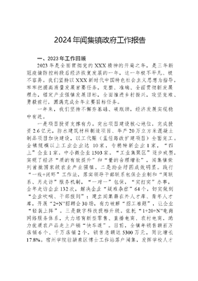 2024年闻集镇政府工作报告一、2023年工作回顾2023年是全面贯彻党的XXX精神的开局之年,是三年新冠疫情防控转段后经济恢复发展的一年,这一年极不平凡、极不容易。我们坚持以XXX新时代中国特色社会主义思想为指导,牢牢把握高质量发展首要任务,完整、准确、全面贯彻新发展理念,锚定产业强镇发展目标,全面推进乡村振兴,攻坚克难、勇毅前行,圆满完成全年主要目标任务。一年来,我们坚持不懈夯基础、破瓶颈,经济发展实现稳中有进。一是项目投资支撑有力。突出项目建设核心地位,完成投资2.6亿元,防水建筑材料制造项目、年产20万立方米混凝土制品项目加快建设,以工代赈(孟任路改扩建项目)全面完工。全镇规模以上工业企业达 10 家,专精特新企业1家,四上企业1家,中小微企业1503家。工业集聚区逐步成型,实现了经济质的有效提升和量的合理增长,闻集镇荣列首批国家级农业产业强镇。二是助企纾困成效明显。践行一线+闭环工作法,落实领导干部联系包保企业制和周联系、月走访服务机制,一对一包保,实打实办事,全年走访企业132次,解决企业疑难杂症64个,切实做到企业吹哨、干部报到;建立闻集籍在外人才库、青年人才库,开展2+N招聘会30场,有力破解招工难题,让企业轻装上阵。三是数字科技提档升级。依托1+20+N电商网络服务体系,大力培育新型零售、直播电商、农村电商,助力优质农产品走上产销快车道。目前,全镇年销售额百万店铺6个、千万店铺2个,销售总额达5300万元,同比增长17.8%。宿州学院驻颍泉区博士工作站落户闻集,发挥学校人才科技优势,在成果转化、人才培养等方面开展全方位合作。一年来,我们坚持不懈补短板、增亮点,乡村振兴实现质效双升。一是扎实巩固拓展脱贫攻坚成果。严格落实防返贫动态监测和帮扶机制,新识别监测对象24户81人,完成教育资助2436人139.01万元,医疗保障惠及11.1万人次576.4万元;小额信贷精准支持975户;实施危房改造19户,三保障一安全持续巩固;0.43万脱贫劳动力实现就业,脱贫人口人均纯收入增长15.8%,全镇脱贫户、监测户防贫保实现全覆盖,牢牢守住了不发生返贫底线。二是坚决守牢粮食安全底线。深入学习贯彻XXXXXX重要回信精神,以良田、良种、良机、良法、良制和智慧农业为支撑,开展一喷三防2次,发放实际种粮一次性补贴、耕地地力保护等资金1096.32万元,完成土地复垦177亩,新增耕地已立项124亩,高标准严要求完成卫片整改10宗,整治违法用地11.84亩;完成土地流转6520亩,粮食产量实现二十连丰,粮食安全根基不断夯实。闻集镇获评颍泉区粮食生产先进集体。三是不断壮大乡村特色产业。扎实做好粮头食尾畜头肉尾农头工尾增值大文章,加快推进秸秆变肉暨肉牛振兴计划,全镇现有规模养牛场12家,肉牛饲养量0.6万头。实施产业发展项目5个842.1万元;闻集草莓全产业链发展模式效益凸显,闻集镇入选首批国家农业产业强镇,闻集现代农业产业园被评为省级现代农业产业园,闻集村(草莓)被评为全国一村一品示范村。一年来,我们坚持不懈抓统筹、提品质,生态发展绘就更美底色。一是生态环境更加优美,深入推进千万工程,苏屯村美丽乡村一期项目全面竣工,美丽乡村省级中心村总数达12个。常态化推进农村人居环境整治,着力打造精品示范村、区域循环线,观摩评比6轮15次,整治自然村132个,改扩建道路路肩5.2万平方米。全面推进农村厕所、垃圾、污水三大革文可居文库——海量学习资料,手机电脑均可下载www.wenkeju.com命,实施农村改厕9398户,农村生活垃圾无害化处理率稳定在100%。依托月末大会选树表彰美丽庭院清洁文明户946户。二是生态保护更加有力。持续打好蓝天、碧水、净土保卫战,严格落实突出环境问题整改556闭环管理机制,扎实推进1+1+N突出生态环境问题整改,完成交办问题整改58个。完成农村黑臭水体治理15条。三是生态底色更加亮丽。推进农业绿色发展,抓好两利用、两减量、两回收,农作物秸秆、畜禽粪污综合利用率均达96%以上,土壤环境状况总体稳定。认真落实河长制、林长制,扎实做好颍州西湖自然保护区保护,完成人工造林、森林抚育等0.3万亩,开展森林病虫害防治面积0.4万亩,森林村庄达15个,乡村含绿量不断提高。一年来,我们坚持不懈解民忧、办实事,民生保障交出暖心答卷。一是用心办好民生实事。牢固树立以人民为中心的发展思想,扎实推进全省10项暖民心行动和省市50+10民生实事,建成老年助餐点11处,让越来越多的老年人吃出幸福好味道。坚持民有所呼、我有所应,充分发挥民声呼应两有三解12345便民服务热线等连心桥作